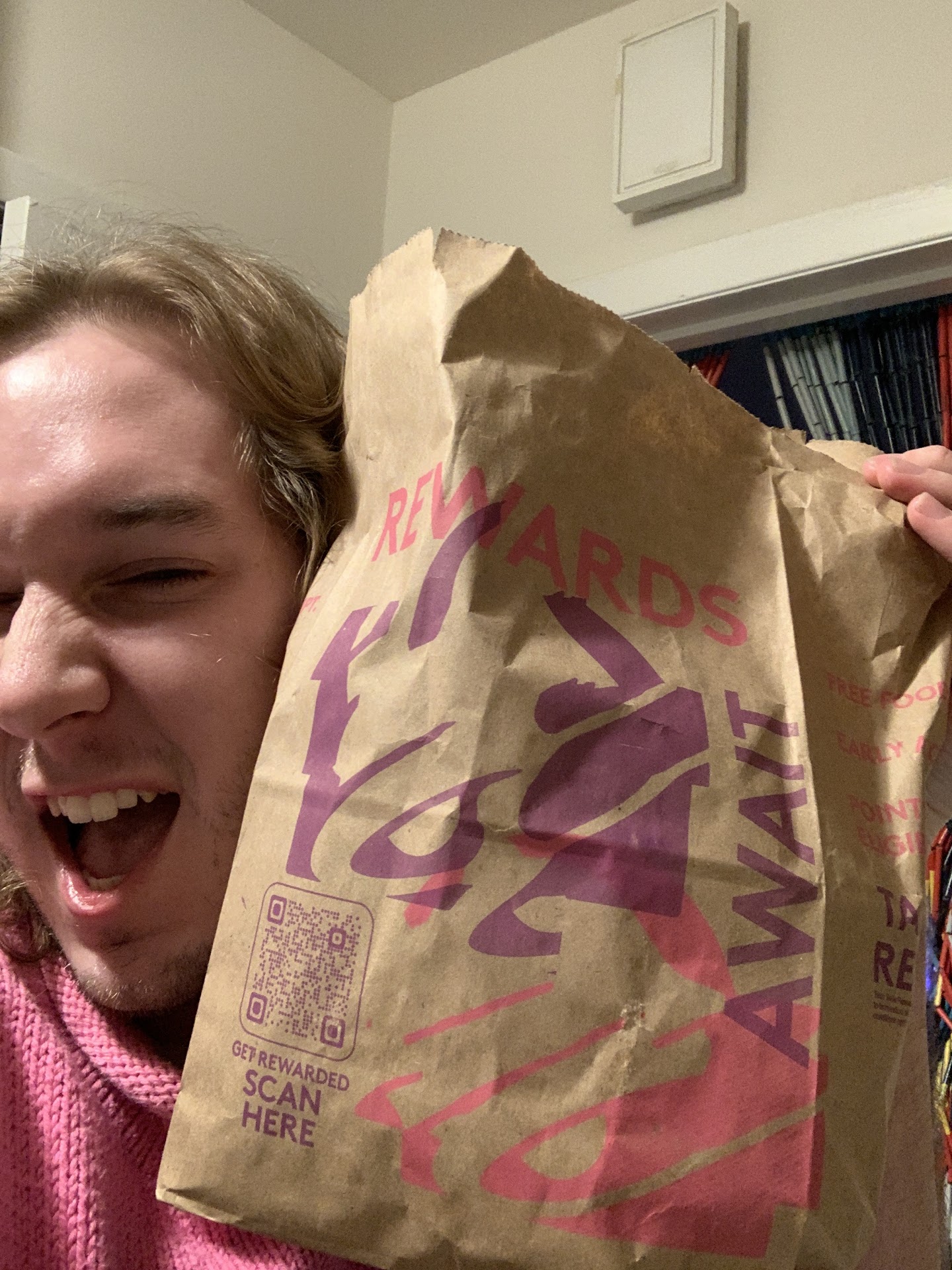 They threw a bag of food at me, and I opened it to check. I saw some food, napkins, and chips and cheese so I assumed it was mine. I just wanted to get out of there and not hold up the line any longer.