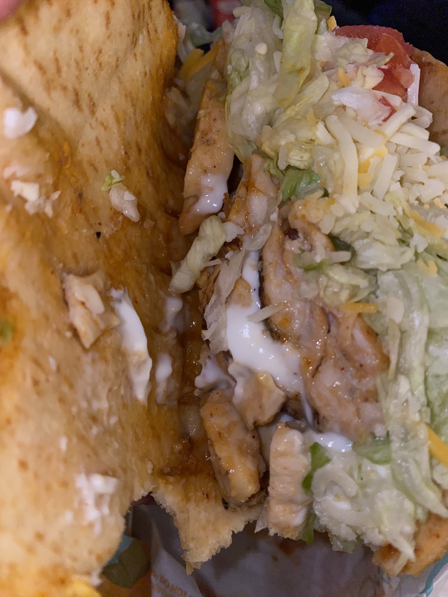 Read moreWell I wish Id have gotten the guys name that assisted me ! He wore long dreads with a big smile and had great positive attitude! Now if only the food would have reflected his demeanor I'd have given five stars across the board but the food sucked I ordered a cravings box through the mobile app which included a gordita crunch ,soft taco and cinnamon twist I also ordered four cinnamon delights . Well I started off with a gordita crunch that didn't taste like a gordita crunch? I think it was because they Really skimmed on the sauce they put on there which really bummed me out because I always order a chalupa in my cravings box but decided to step out of my usual and order a little different ,it was a fail along with my soft taco that they forgot to put the cheese on ! it was disgusting! It barely had meat and way too much lettuce !like they were trying to make up for the missing meat with lettuce by Far the grosses Taco I have ever had from Taco Bell along with my under cooked cinnamon bon delights those little tiny tiny things that you only get two of for a insanely amount of money are far too expensive to be served cooked any way but perfection especially under cooked ! There was no warm filling surrounded by a crisp outer layer ,More like cold filling and bread 🍞 you'd think they were allergic to cinnamon in there given the amount on my bites. Um gross food good service but come on when the food sucks I'm not thinking about how nice the attendant...