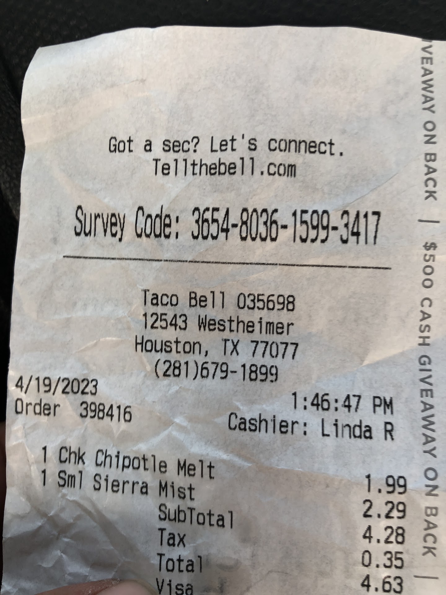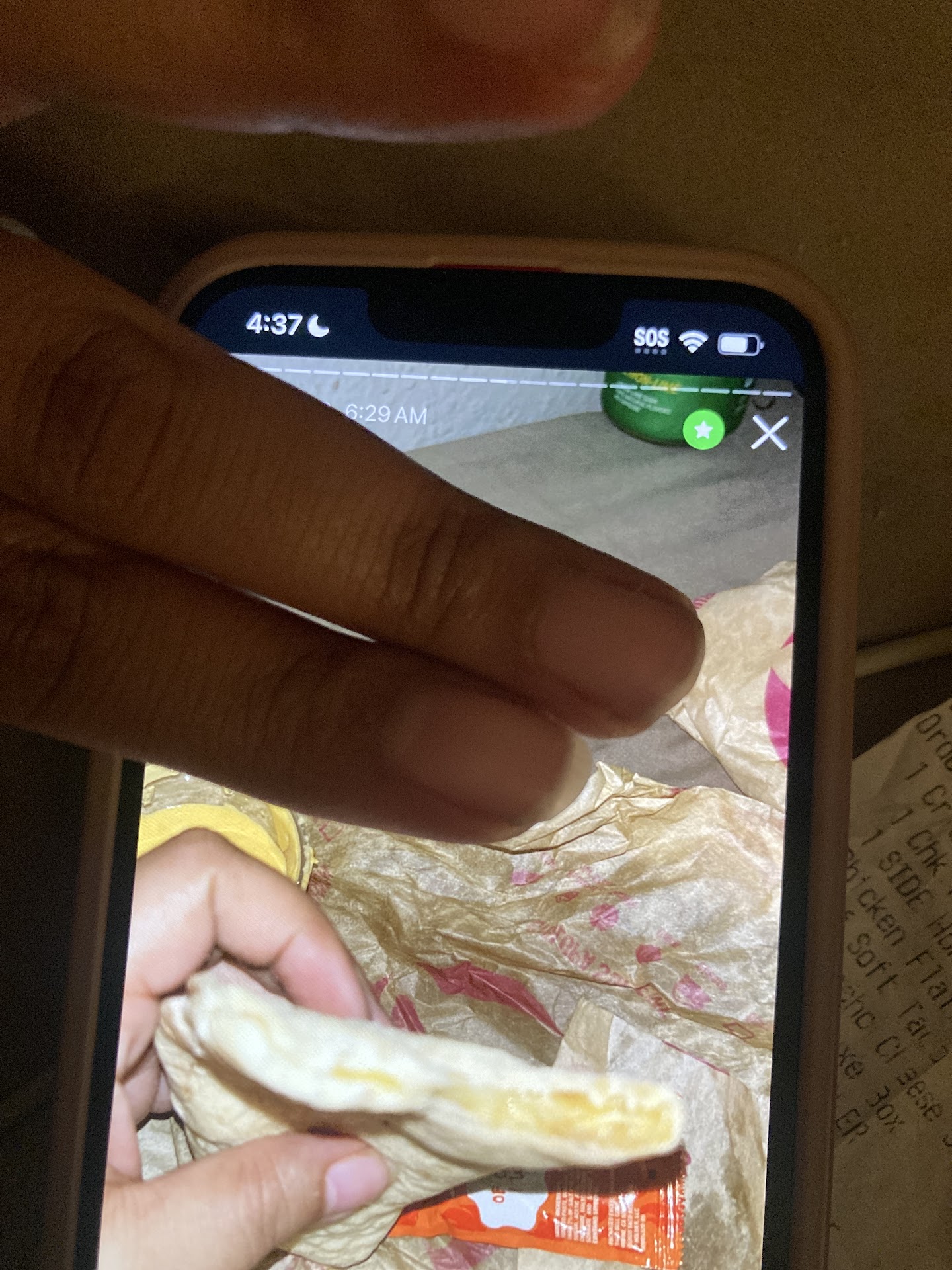 Read moremy name is Jasmine & i will be calling corporate bright & early whenever the building opens simply bc the manager &or employee Denequa T.. was very RUDE! like VERY i literally drove 6.2 miles away two nights ina row after a long day of managing a restaurant myself & Couldn’t even get my order remade & i have my receipt & everything.. asked for them to remake my flats bread bc whomever made them 05/08/25 @ 3:13am threw them together so terrible i literally barely had any chicken in em.. jus so happened i ate my food separately NOT all at once & by the time i had eaten my flatbreads Taco Bell was closed! Unfortunately she wasn’t willing to hear me out & now i will be contacting cooperated! literally spent $20 & couldn’t even get a remake terrible customer service 🙅🏽♀️! that’s the proof of the time i actually ate ate my food bc the nuggets being tough even after me asking for them...