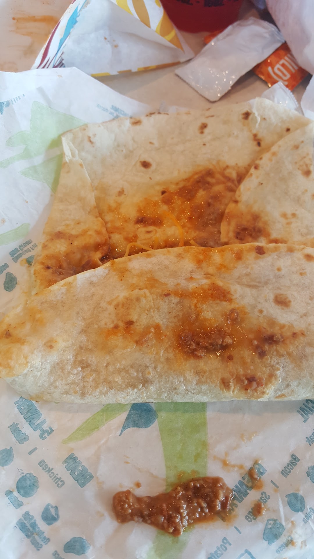 Read moreThis location is the reason I am refraining from Taco Bell… or should I say from this specific location.. on multiple occasions I had food containing their MEAT and it IS AWFUL! I cannot explain what it tastes like. I can’t say if it’s old, seasoning isn’t mixed in… I have no idea what they are doing with the meat here… just try your luck, hopefully you get it on a good day… however, from my encounters, it doesn’t matter what you order, a chalupa, taco, burrito or the dang Mexican pizza that they are always sold out on. Whatever contains meat, literally tastes disgusting, like no other Taco Bell...