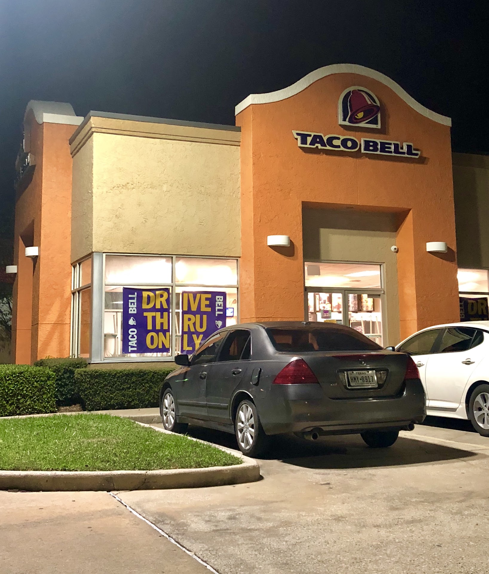 Here's my grade for this one particular Taco Bell location: FAIL. I don't mean to be mean, and it's definitely not this Taco Bell's fault, but the crime level in this particular local area is so high that for the past two years this Taco Bell's dinner area been closed to customer traffic -- the dinning area doors are locked both day and night! Drive-through only customers are accepted.