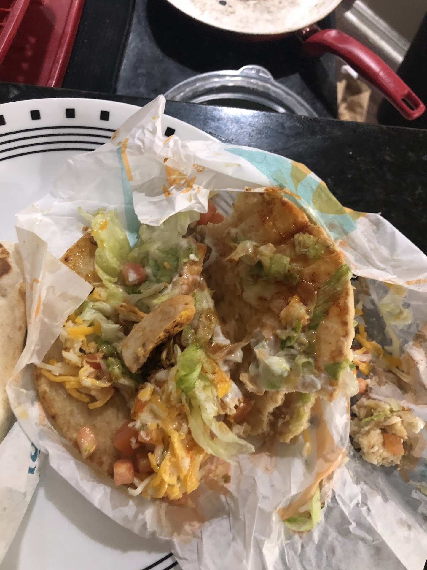 Second bad experience: Today, I again went to this location in evening around 8.30pm to drive thru.A lady took the order after making me wait for few minutes. I ordered 2 chalupas and mentioned very very clearly vegetarian (beans) and also mentioned about last weeks experience and asked for fresh chalupas and even my bill also says vegetarian is substituted instead of non veg but still they gave 1 chicken chalupa and 1 chicken burrito and they also looked very dried and in bad shape.I took pictures of the bill and order i got.Again, I opened after reaching home.All my money got wasted again.
