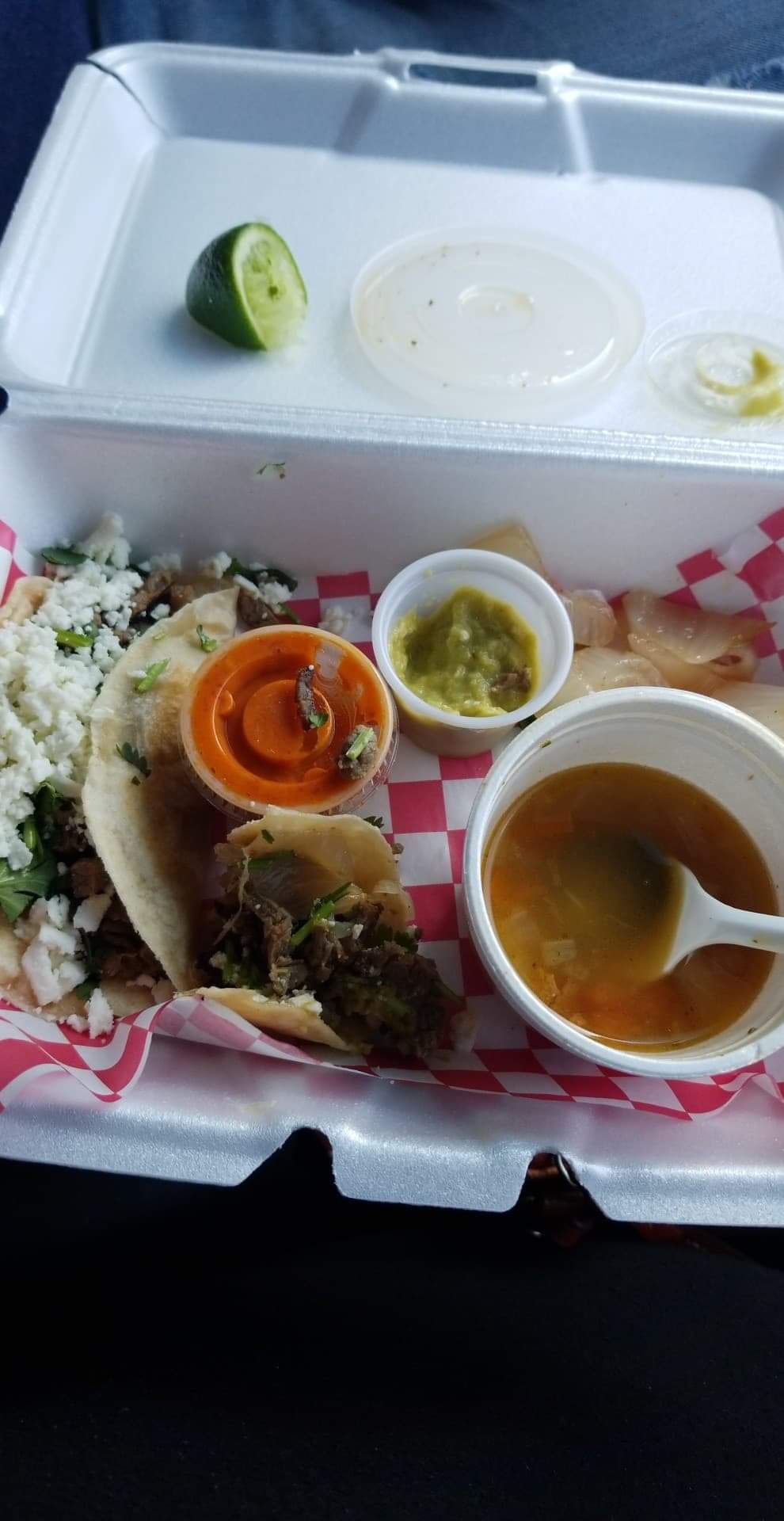 Read moreI feel like the prices are great for what you get! I got 5 meals and paid $42, a chicken torta, 2 orders of 5 quesabirria tacos that comes with consume and 2 small bistek quesadillas. 2 Salsas (SO GOODđ) & a lime were included with the quesabirria but if you want extra then just ask for it. You can also order through grubhut & doordash but the wait is worth it & made to order if you decide to pull up & order there :) I will definitely be...