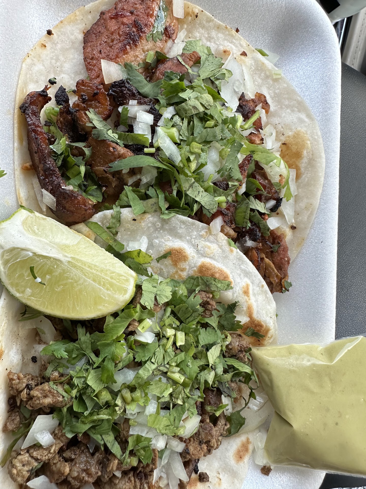 Read moreThis food truck puts out some awesome food! I’m so glad I stopped to try it! Im a fans of flour tortillas but, this place makes this super thin and small like the corn ones. Meat was all cooked great and the flavor was perfect for the Bisteck and Pastor. The green salsa is exactly what you expect with the peppery flavor. It’s not overly...