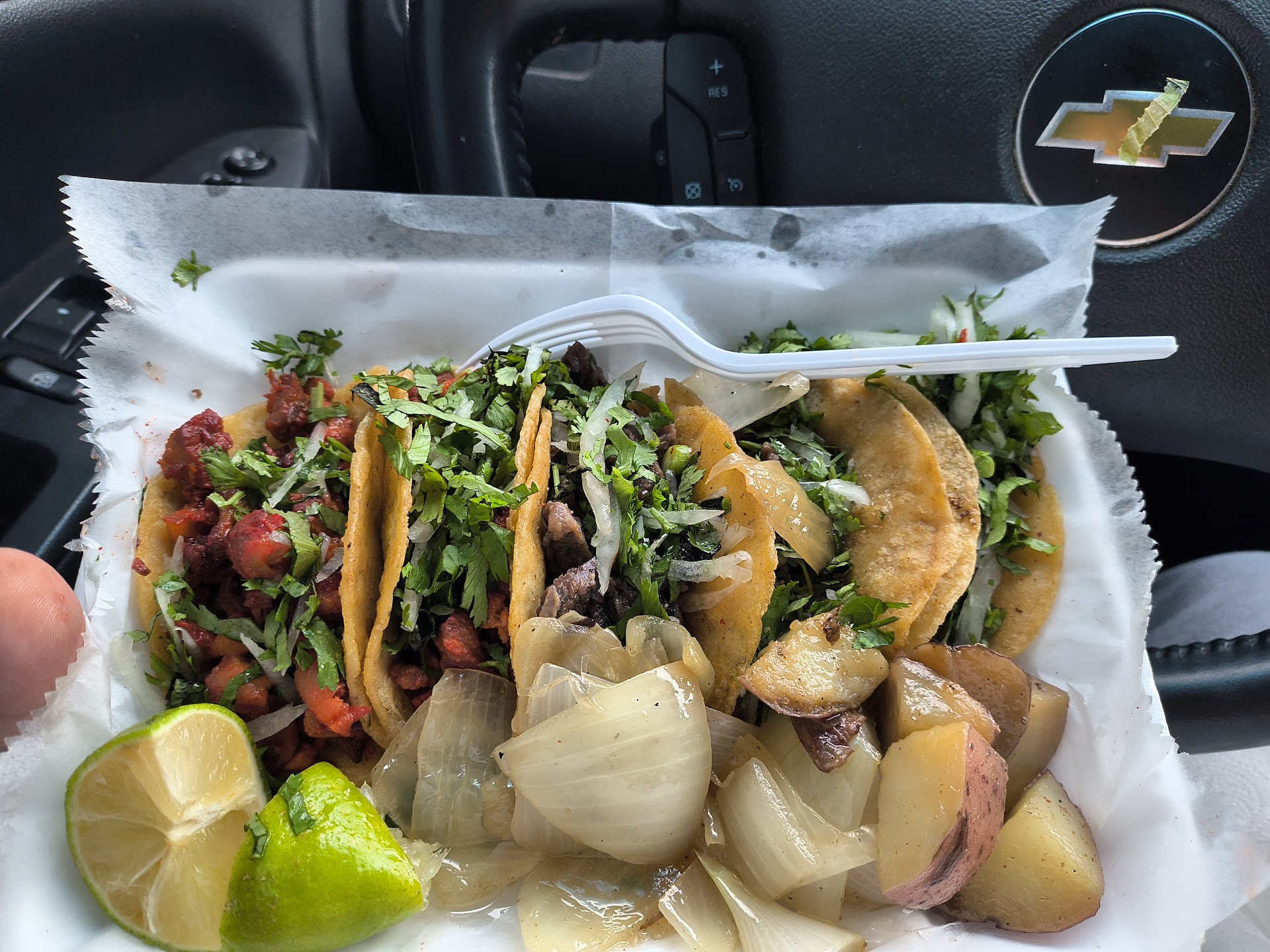 ¡Fui por tacos! ¡NO LO RECOMIENDO! ¡Vi dos cucarachas en la cocina! El estacionamiento tenía baches enormes, y para colmo, la carne estaba demasiado cocida. ¡La carne estaba asquerosa! Se tiró casi toda la comida! Además, los precios son un poco altos para que la carne estuviera mal cocida. Había una niñita tomando pedidos; entiendo que es un negocio familiar, pero tenía el pelo muy despeinado, ¡como si acabara de despertarse! ¡Sinceramente, no le recomendaría este lugar ni a mi...
