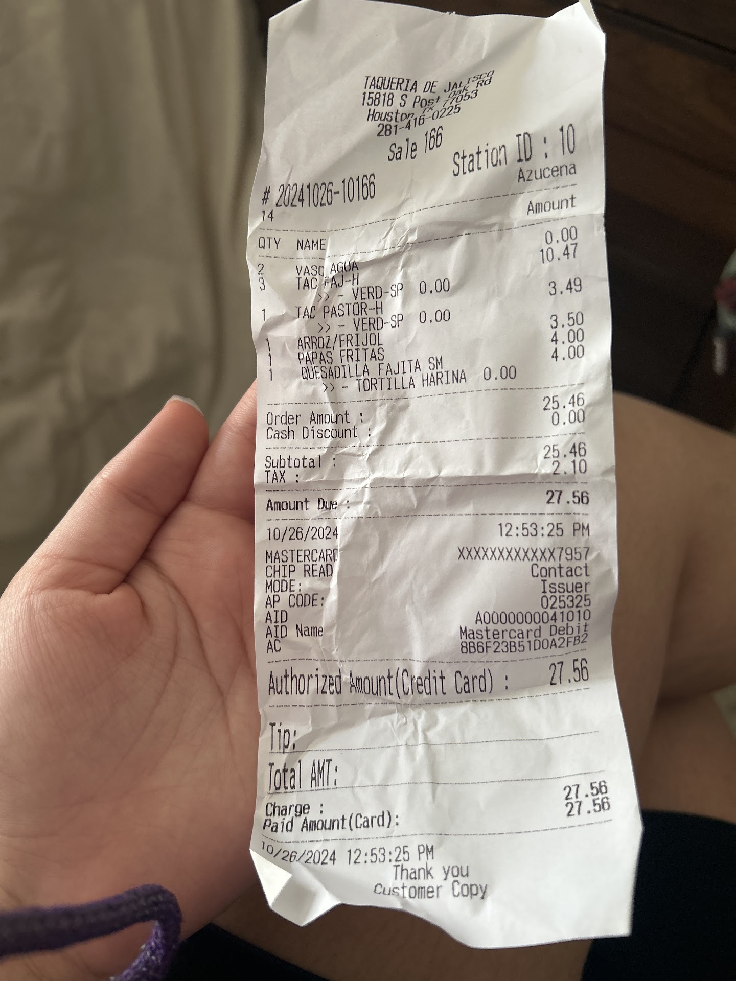 Read moreI’ve been coming to this restaurant for years with my family and I’ve never had problems before. Until tonight... I went in ready to eat I was happy and laughing with my family. We had two servers tonight. The first one came and gave us our chips and salsas. As she sat the salsa down she had spilled some next to me. She saw that she spilled it and she saw that I saw her spilled it and instead of cleaning it she just walked away. I was like okay and just let it go. The second server came to us and took our orders. She seemed nice and everything. First server came back and gave us our plates and I kindly told her that my order was wrong and as she was leaving I asked my family if I was in the wrong and mistakenly asked what they gave me and they said no. Minutes later passed and the second sever came and attacked me by saying that she was not in the wrong and that it wasn’t her fault that it was mine. After that she brought my order correctly. The food was decent. As we were getting ready to leave and pay for our food waitress number two came to pick up our dishes and as she proceeds to reach over me to get our cups she spills a full drink on me. All my clothes and shoes got wet and also my sisters phone. We go to the manager and she tells us that “accidents happen” “get insurance on your phone” “what do you want us to do about it” “put your phone on rice” Not once did they apologize... they weren’t sorry. We asked for the owners number...