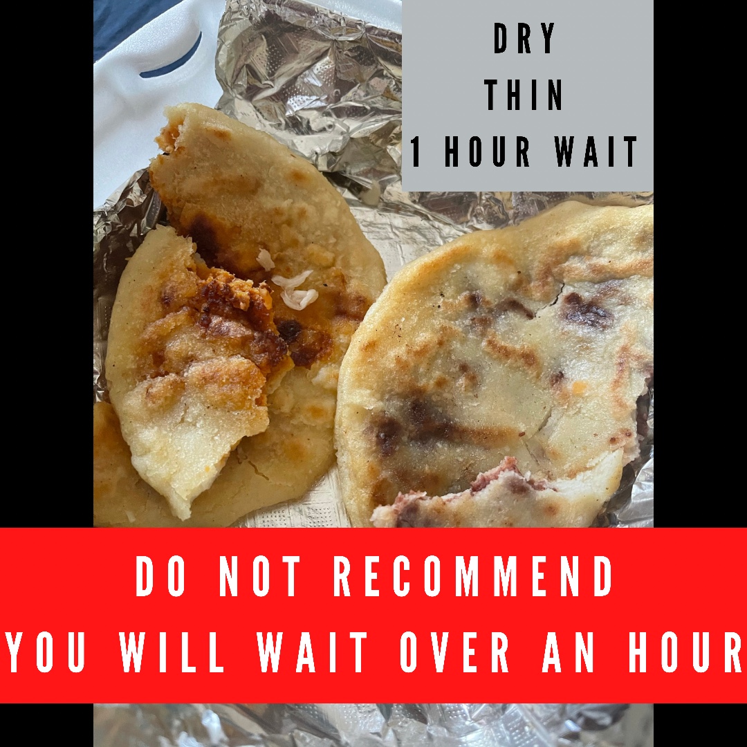 Read moreRidiculous wait time! Called the order in and arrived 30 minutes later, had to wait an additional 45 minutes after arriving. Popusas were extremely thin and dry (image attached). When we informed them of the hour wait they showed no consideration or regards whatsoever. Definitely not worth the wait and would definitely...