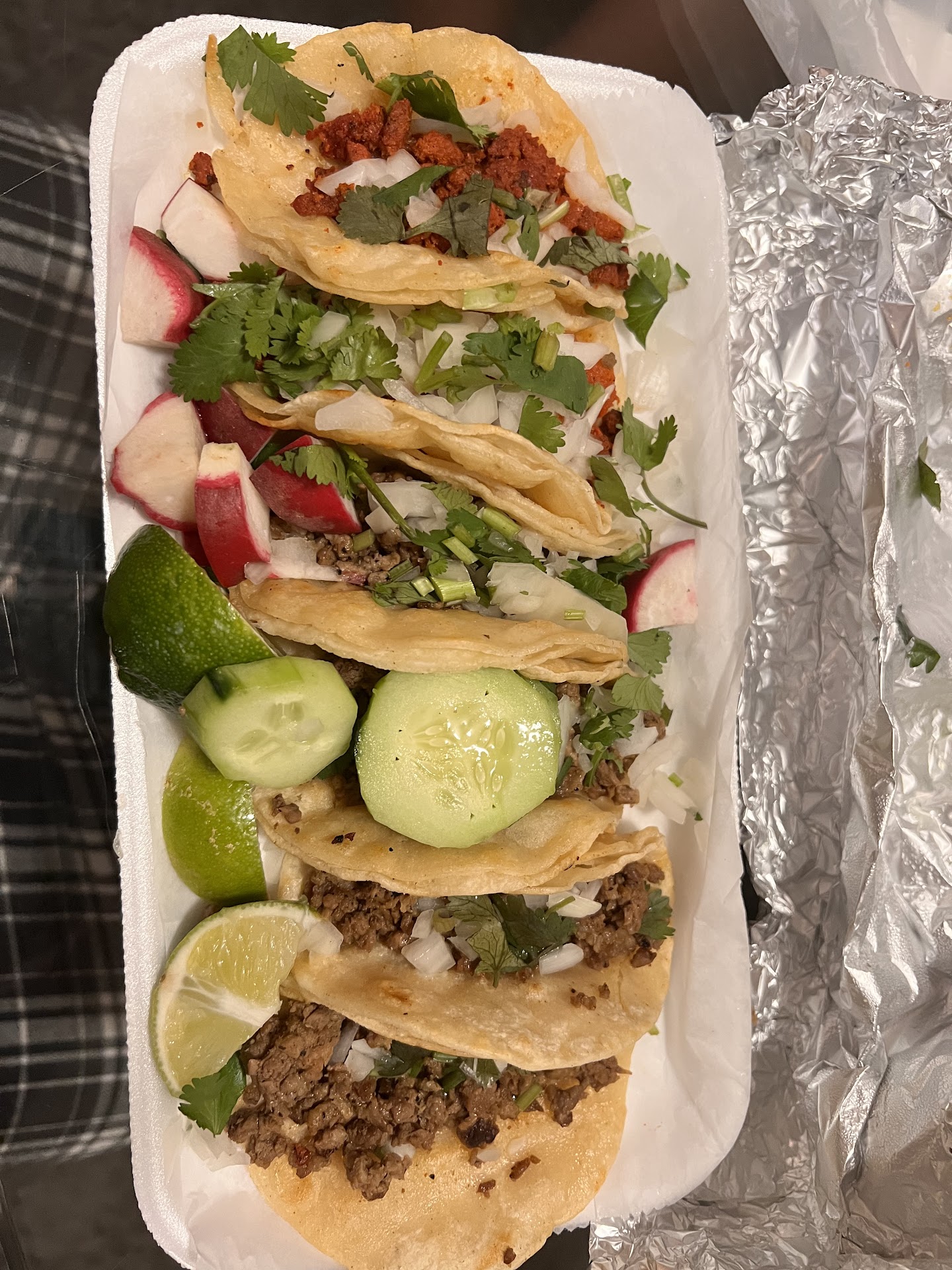 Read moreTacos was BUSSIN’ last night around 12AM. Got Pastor tacos and beef fajita… side note: they have green sauce and it’s spicy (not pictured)! Loved that! Tacos are small street tacos $1.50 each. Sad I didn’t order more. Lower star rating for now because I went back today to get more and the food truck was closed at 2PM and they weren’t answering the phone number listing on the truck. Not sure what their real hours are because Google said they were open.