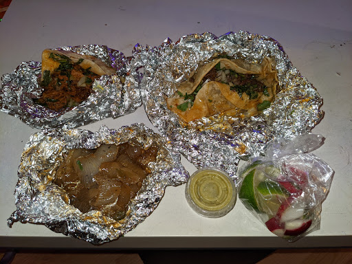 Read moreThe tacos are pretty good. I really like how thin and fine the meat is chopped. The service is great. You don't have to get off and order like other taco truck places. A usually nice and friendly employee walks out to your car and takes your order, then brings it out to you as well. You can take the tacos to eat elsewhere, or you can just eat them there in your car. I love eating them in the car. They bring out the tacos on a plate, and provide you a whole bottle of salsa so you can put as much as you want. I love that they also give you lime and sliced radishes without asking for them. Sometimes they even ask if you would like some complimentary frijoles...