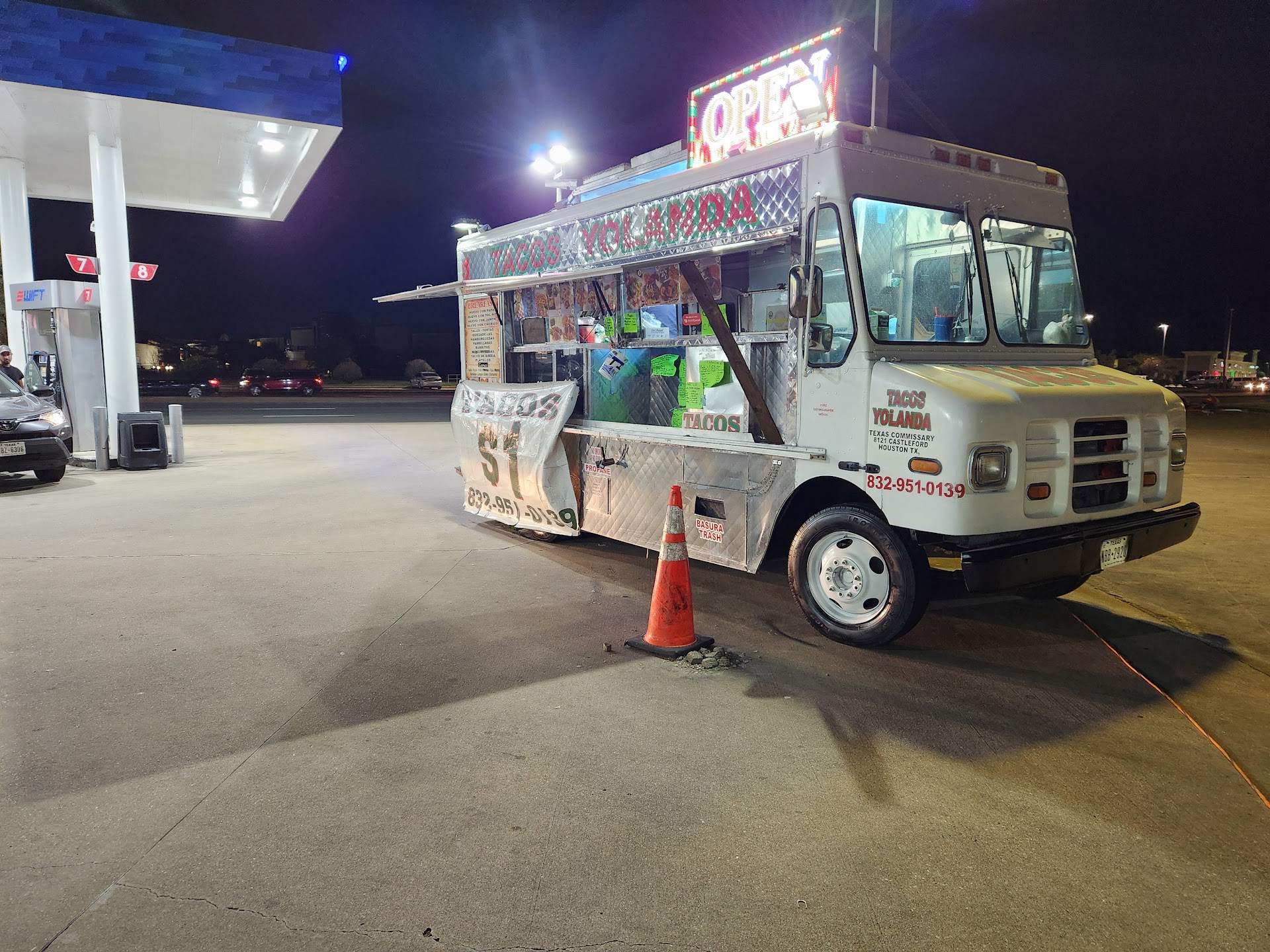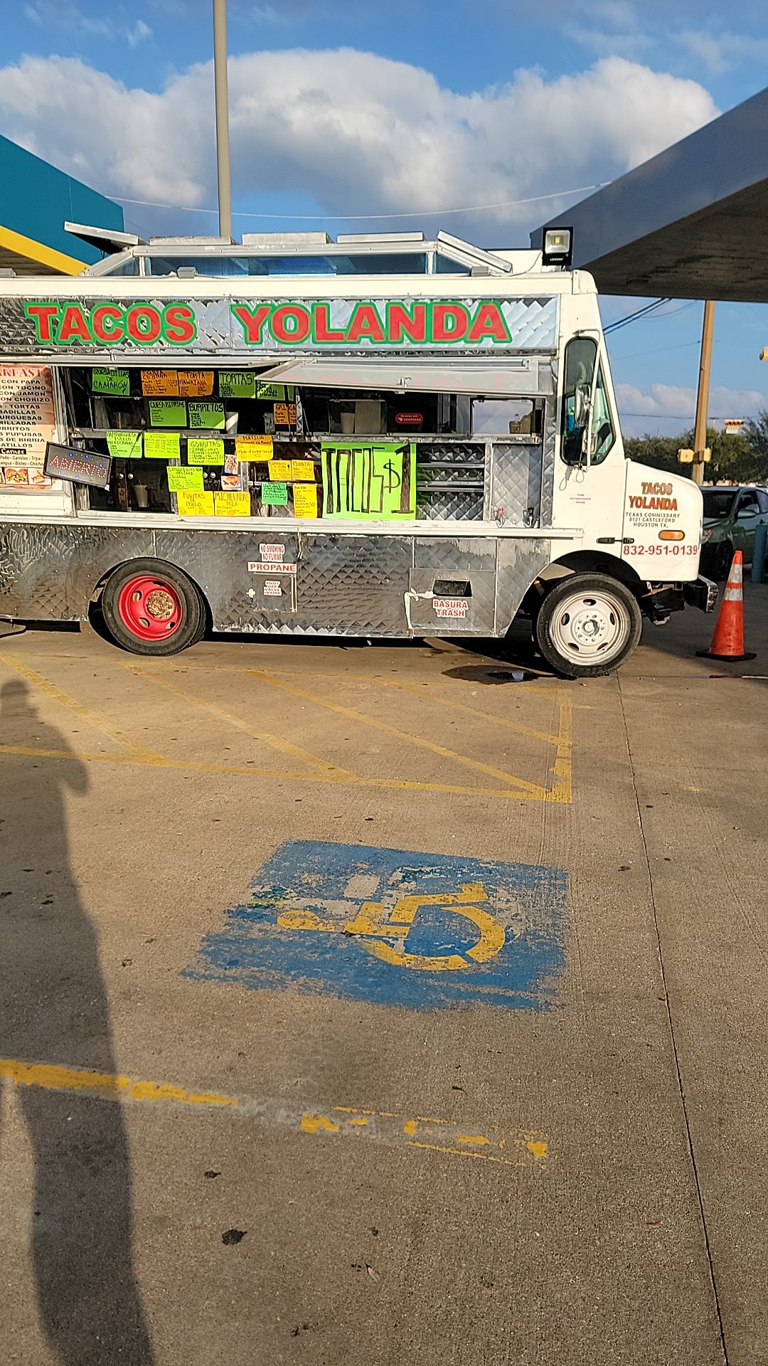 My review wont update: im giving 4 STARS. The food was good I had birria tacos. I ordered over the phone the lady said 10 min I got there 10 min later and had to wait over 20 minutes as my order was never prepared. Almost made me late back to work. The customer service is great. Consume was a little salty but still kind of good. Them charging me for topping per taco was crazy to me. I also tried the $1 tacos they are so small I didn't even know that was possible but still worth $1. The sauce they give you red and green are both to hot for me and i like hot stuff. They did give me hot Verde sauce but I need taco sauce for my Tacos. The yellow rice and refried beans were sooo good. The truck is located in a gas station so parking could vary on how busy the gas station is. I never had problems finding places to park though I've ate here at least four times.