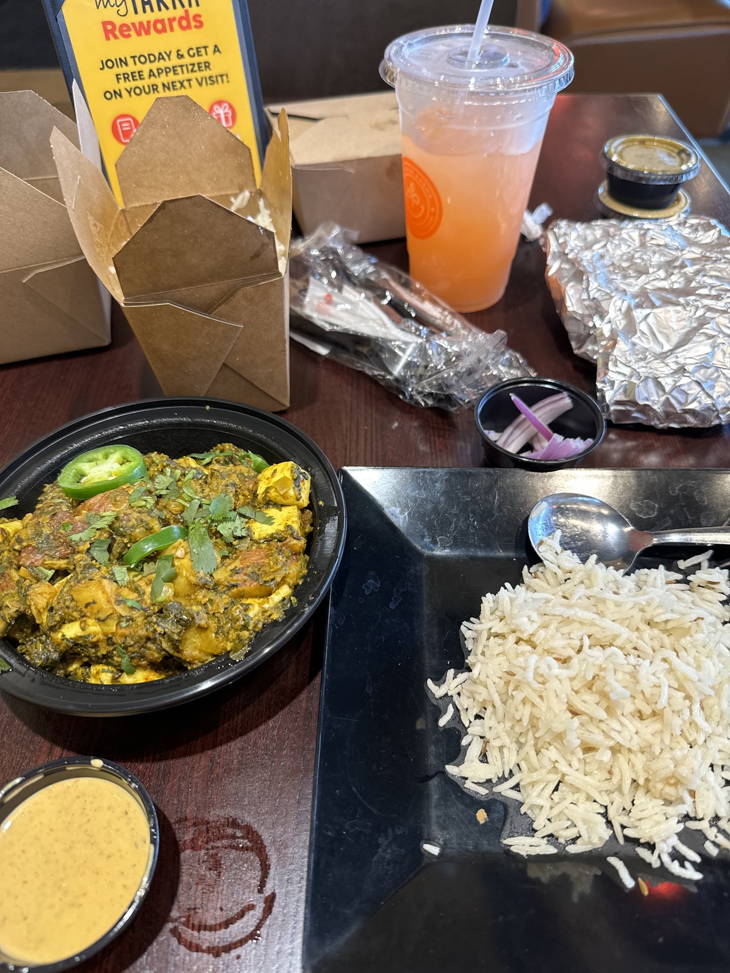 I recently visited this location for the first time and was overall impressed with the staff and the quality of the food that I made a second trip within a week. Which is not typical for me. On the advice of the young lady behind the counter on my first trip I signed up for rewards and was directed to download the app. ( I know, another app taking up precious space on your phone. I had the same thought, but I did it anyway) Using the app for the first time to pre order food for carry out for my second trip, I earned a free appetizer ( veg samosa ). Pretty cool. (Turns out it was worth downloading.) Also, The app was easy to use and worth the download if you are a person that likes taking advantage of points at your favorite places like me! When I arrived to pickup my order, I decided to dine in. I asked the gentleman at the counter, who I believe to be a manager, if I could purchase a drink and sit at a table. To which he replied “let me get you a plate and silverware and a drink on us. You can absolutely eat here with us”. Again, impressed with the staff. Now the food.. it’s pretty damn good. I requested my dish be prepared “hot” on the spiciness level and I feel it hit the spot. They definitely used a few slices of jalapeños to add to the spiciness of the dish which as a Hispanic I can appreciate. The freshness of the food was apparent. The taste was on point. I tried the Matter Paneer dish that comes with rice and I added potatoes. I also ordered the Alo Saag with garlic naan. Also comes with rice. The Veggie Samosa were delish and the Mint Chutney is a perfect pairing. The Paneer Pakoras and Veggie Pakoras were fresh and delicious, and so good with desi ranch. Overall, this place is a great place to eat especially if you’ve never tried this type of food...