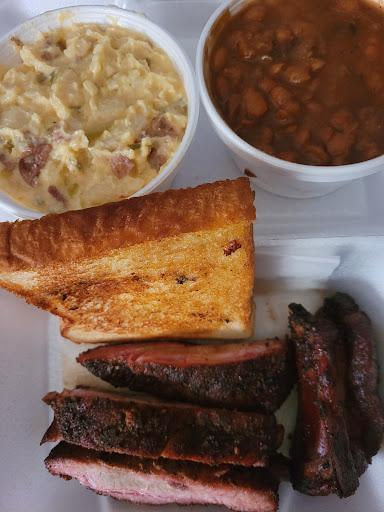 Read moreThis place was absolutely NOT to my taste, so just a warning for those expecting normal everyday Texas BBQ. Pros & Cons: well, the potato salad was good. Cons: First, there's almost NO parking. It's a tiny place, shoehorned into a strip mall that's set too close to the street and jammed with cars. It's got no place to dine inside - well, maybe 2 tiny tables, but they're taken up by the long lines of people waiting and waiting and waiting for their orders. Half the dining area is taken up by a giant table that's used for placing orders. It's obviously a family business with all the family members working - from grandma to the kids, and disorganized to boot. They're cheap with the tiny 2 spoonfuls of bbq sauce that comes free, and any extra costs more. (NO place in Texas charges for extra sauce that I've been to!) Now, the food: There's too much vinegar and pepper in everything. The slaw was spicy and the beans way too sweet - opposite from expected. I could hardly eat the beans - such a weird taste with all that sugar then topped with pepper or something. The brisket and ribs were just ordinary at best, and overall more tough and dry than I care for. Actually ended up just throwing half of...