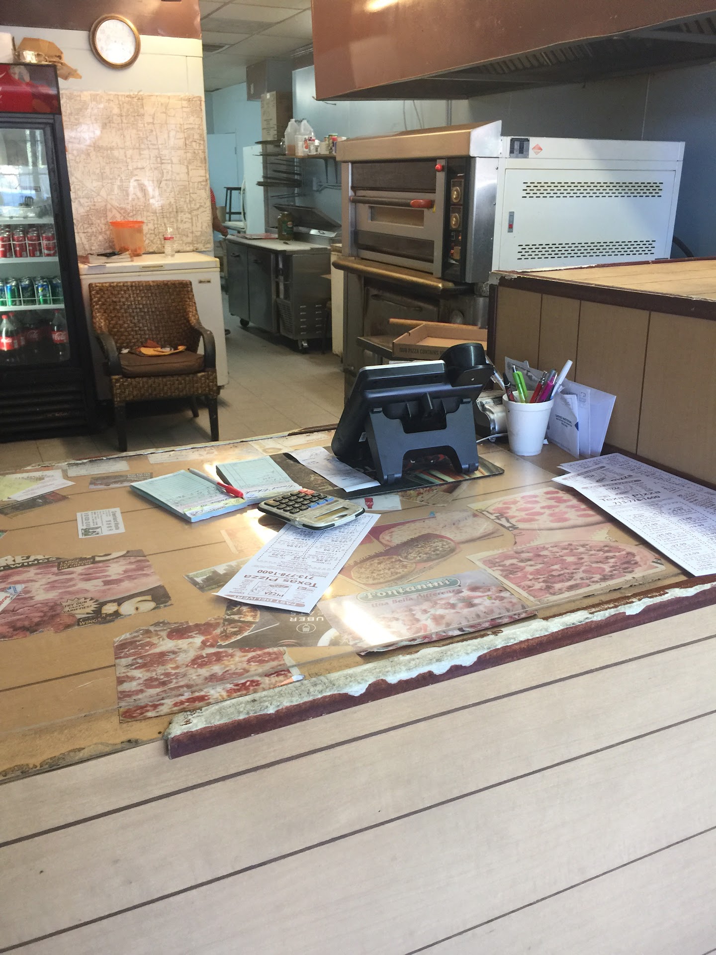 Sometimes multitasking is a horrible thing. There is only one lady working and she has to answer the phone while making a pizza and proceeds to collect cash for a new order and proceeds to go back to making a pizza.
