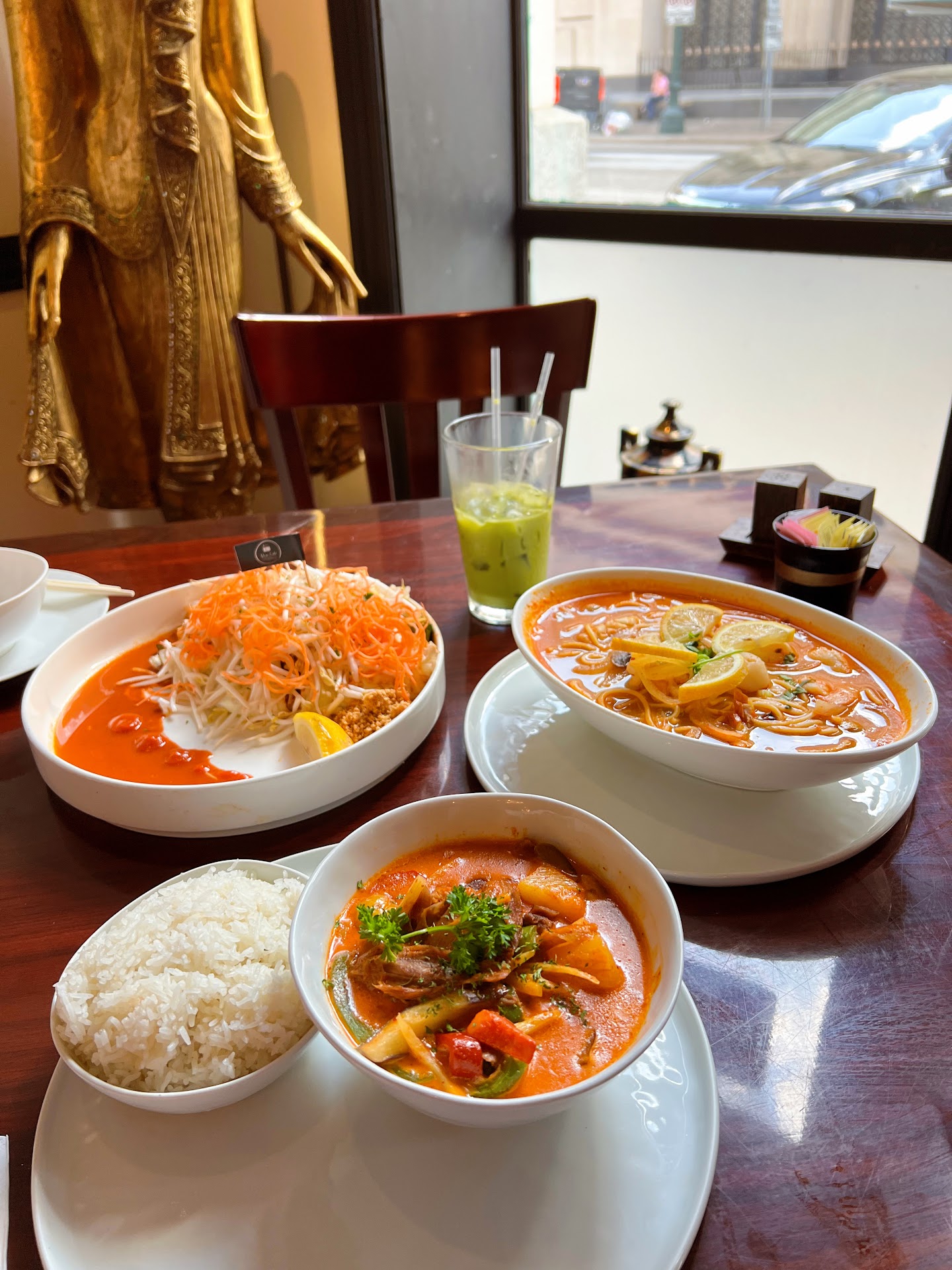 My sister ordered the Maruchan Ramen Shrimp plate, and she couldn’t stop raving about it. I went with the Yellow Shrimp Curry and paired it with the Thai Papaya Salad. Let me just say—wow. The curry was creamy and rich, with just the right amount of heat, and the shrimp were cooked perfectly. The papaya salad added a refreshing crunch and a touch of sweetness that balanced everything out beautifully.