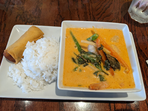 Update: we have now been back at least four times. Every thing we try is fresh vibrant and amazing. Love the red shrimp curry, papa salad, pineapple chicken, and madarian chicken, and glass noddle shrimp salad. The lunch prices have risen now to $8 though. You still get a salad, soup, and eggroll though. One of our favorite places to go.