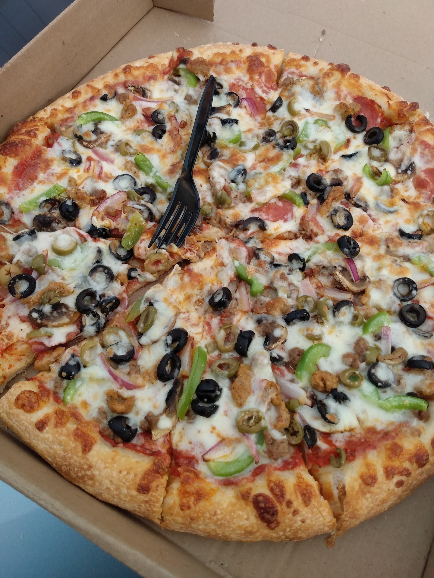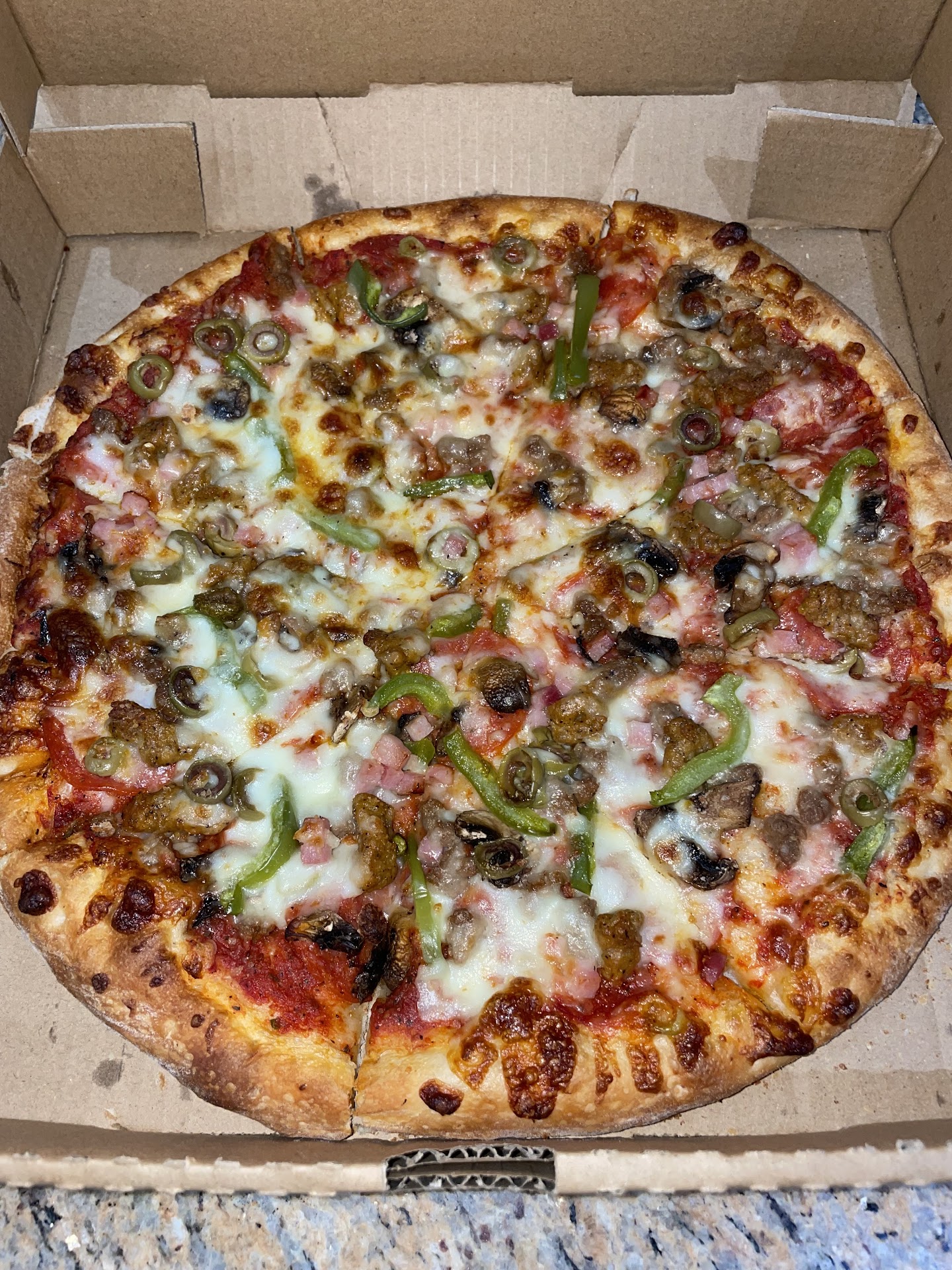 This is the only pizza place in this area and honestly the only one we need. It even tastes better than the big chain pizza restaurants by far. Last night I had there chicken Alfredo it was delicious. I normally get there Pizza but last night I wanted to try something new im glad the did. The pizza here is amazing always served hot ingredients are high quality veggies are fresh! My go to is the meat lovers add onions, peppers, extra cheese and extra bacon. The pizza come out perfectly cooked. Customized to your liking. When I pick up my order the pizza is heavy loaded with toppings and deliciousness just like i like It. they don't skimp you I will forever be a customer here for the reasonably priced delicious food the place is a little hole in the wall but we all know those places always have the best food. P.S The chef there is a kind man he has a good heart very humble and down to earth its always been a good experience with him he treats all people equal and he definitely deserves a raise for always being a outstanding business representative a helping this...