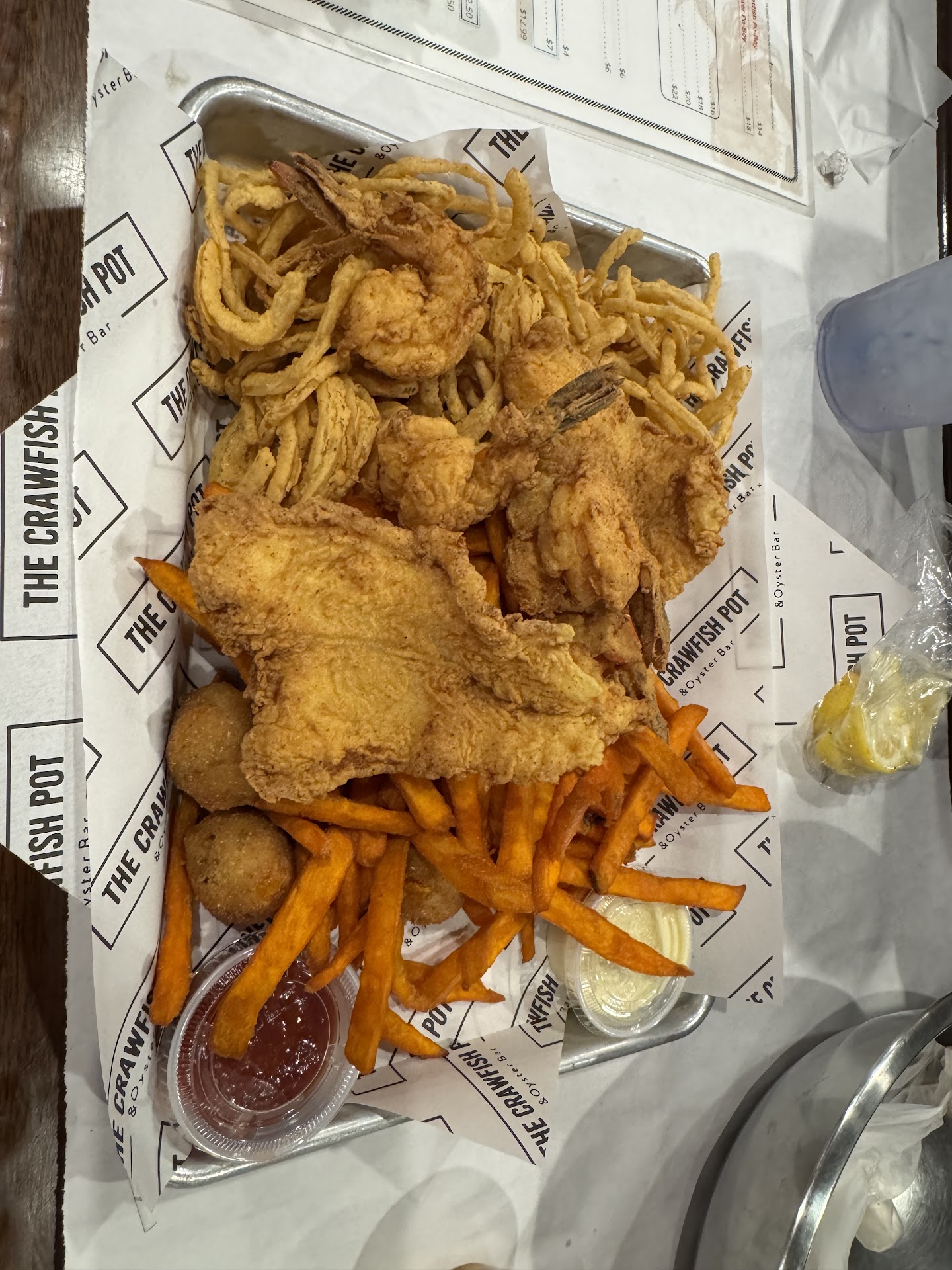 Read moreWe tried this place years ago and got crawfish but weren't that impressed so we didn't go back. Until today, our daughter said the place had gotten better so we tried it again. We waited about 10 minutes to get in and be seated, and we were taken to our table to be seated and the floor under our table was a complete mess. So we stood around waiting for them to clean the floor which was another maybe 3 or more minutes. Took a few minutes to get our drinks and when I got my coke it was flat so I returned it. We ordered and got our crawfish pretty quick. But my husband's plate took about 5 minutes longer than us so we waited to eat until he got his food (it should have all come out together). The butter and seasoning tasted pretty good, but the crawfish meat wasn't that good. We travel a lot and have tried crawfish in many places. Most of the crawfish meat was like ground crawfish, and when I peeled the crawfish it would break often and stick to the shell and worse the crawfish were small. I have never had so many broken and ground crawfish meats. I do not recommend this restaurant for crawfish at all. And last let's not forget to mention the high prices for crawfish at $7.99 lb, and the sides for 5 potatoes for $3.00, 2 potatoes and two small sausages for $4.00 etc.. Even this late in the season we haven't been or seen anywhere with such high prices for crawfish. The boudain balls and spicy mayo were very tasty and the waitress was nice but that's about the only good I can say about this place. I can definitely say that we will never...
