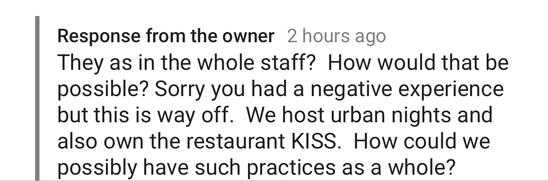 Read moreLike every other event, this event had early bird tickets which usually mean if you come on time and early and get your ticket early enough, you could get in free which me and my friend did over a week before . We get there on time. They told us to leave and come back a little over a hour after they open Because theyâre not ready, we came back in 30 minutes to get our spot back in line And still had to wait another 40-45 minutes. Mind you theyâre only open for 4 hours. As we finally get to the front with the rudest staff I ever encountered in my life.. the bald man with glasses tells us heâs stopping the early bird tickets at me and my friend because itâs too many people getting in free which defeats the whole purpose of the early bird ticket* even though weâve been there a hour and a half waiting for them to open. Charged us 40 each on top of $40 parking and the performer did not come until closing at 2:00am and the club closed 15 minutes later. I would give this place 0 stars if I could. Never again. All the staff was rude except the bartenders even the top flight security who repeatedly very disrespectfully kept telling me and my friend to either pay or leave after we tried explaining to him how long we been in line and what we was told. As Iâm reading the comments, apparently this is nothing new everyone is aware of the unprofessionalism and disrespect, yall say itâs under new management but the environment and professionalism is exactly the same I donât know how this place is still running....