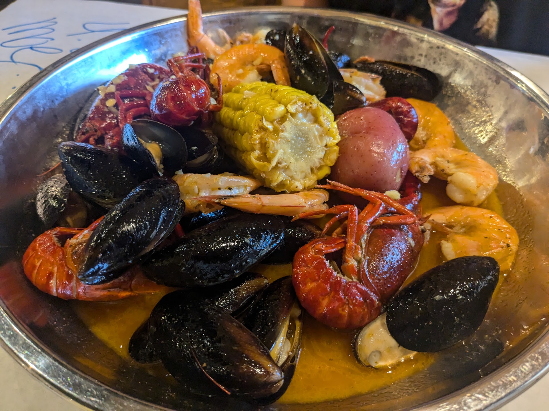 Stopped by about 4:30 on Saturday afternoon date with my gal. At first though the restaurant was going to be empty. It just turned out the parking lot extended further than we thought. The inside was bright and clean. We were greeted and seated without any wait. The restaurant was actually filled with more people than we first thought. The patrons were diverse from all cultures and ages. There were large tables for 6-8 people and cozy tables for two, perfect for date night or groups / families. When you sit down they write your arrival time on the paper covered table along with our server name. They assured us there was no time limit and drew a smiley face to let our server, "Moe", know it was our first visit. Moe, knowing it was our first visit took extra time to cover the specifics on how their menu worked. She explained the heat level, sauces and combos, ensuring our ordering went off without a hitch. She even found a bottle of my favorite beer even though it wasn't on their drink menu. Now to the food. We opted for steamed oysters for an appetizer. They came out warm with several kind of sauces. Our favorite was simply the garlic butter. I'm used to grilled, raw or fried at most places. So the steamed was a nifty change on my oysters. I ordered the catfish plate with regular fries and she ordered one of the boiled combos with shrimp, crawfish, muscles and 1 each a potato and corn. We would up splitting and sharing it all between us. Before the food came out, they brought out the full complement of seafood boil accessories. Bibs, gloves and even moist towelettes. The catfish fillets were large and thick, coated in a flour based batter. Served in a paper boat on top of a generous helping of French fries. The fillets were fried to a slight golden brown and were of good quality, tasting like catfish enough with our going overboard. I left with the feeling like I had taken care of my catfish craving.The fries seemed site cut and not Frozen. Moe served our boiled combo and even opened the serving bag for us and poured it into the serving tray. .... It struck me as much as we have crawfish none of the other restaurants that bring the order to the table in a bag never ever do that. The shrimp was perfect and satisfying, not over boiled and tough. They were pink and still had the slightest sweetness you get from a good boiled shrimp. The surprise for me were the muscles. I don't usually look twice or consider muscles when they're on the menus. In the past they were too fishy or too rubbery for me to enjoy. These made me see how good they could be. Both of us were pleasantly surprised and won't dismiss muscles again. The potato and corn was just right and deliciously tender .... I wonder if they'd let me just have a meal of nothing but corn and potatoes ? .... Everything we had that day was really good and the friendly staff made us feel welcome the entire meal. We really enjoyed our visit and will definitely come back. I did back the food stars off to 4 for a couple of things . It should be a 4.5 but I don't have that option. ... The fries were a bit of a letdown. They were soggy and had a slightly old oil flavor. One of the catfish fillets on a scale of 1-100 on doneness was a 98 .... Ok, but another 60 seconds could have helped. I could mention the crawfish was less than stellar but it is OCTOBER and stupidly past the season. If you're expecting perfect crawfish this late .... I don't know what to say to you . While large and done well, they were obviously frozen. We know it's off season and will have to do a revisit in the spring to judge them on that. Really only the fries were a bit sub par and I really enjoy fries. These, not so much.