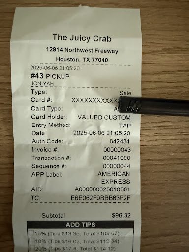 Read moreThis location on northwest freeway is way farther from my house but better than tomball pkwy location. Tomball smelled a bit too much of weed. Idk if its cause we went later in the evening like 7pm maybe. LIke no judgement Idc but im sensitive to smells even perfume and if you have kids obviously they will not care for the smell but the food looker so good i had to try it. Im glad i did cause once your food comes all you smell is deliciousness lol. This northwest frwy location just feels more open and clean and friendly. The a/c was on point too đ I've only ever ordered the #7 & #6 combo juicy seasoning mild and it seriously is sooo good im addicted lol. Antonio at the Northwest frwy location is awesome right off the bat just great energy great speedy service đ definitely ask for him if you stop in! Also please Juicy crab can we get a location closer to magnolia/woodlands area! đđ just finished my meal at this location and it just got better had to update such a great vibe. Who I assume is the manager was walking around thanking diners wishing us a happy Easter checking in just so nice and genuine. She also recognized the couple sitting next to me as did antonio which I thought was just so nice đ it's nice when they remember you at places just like when I'm at work i try to remember folks love to see it. if yall say anything bad about this location we're gonna have...