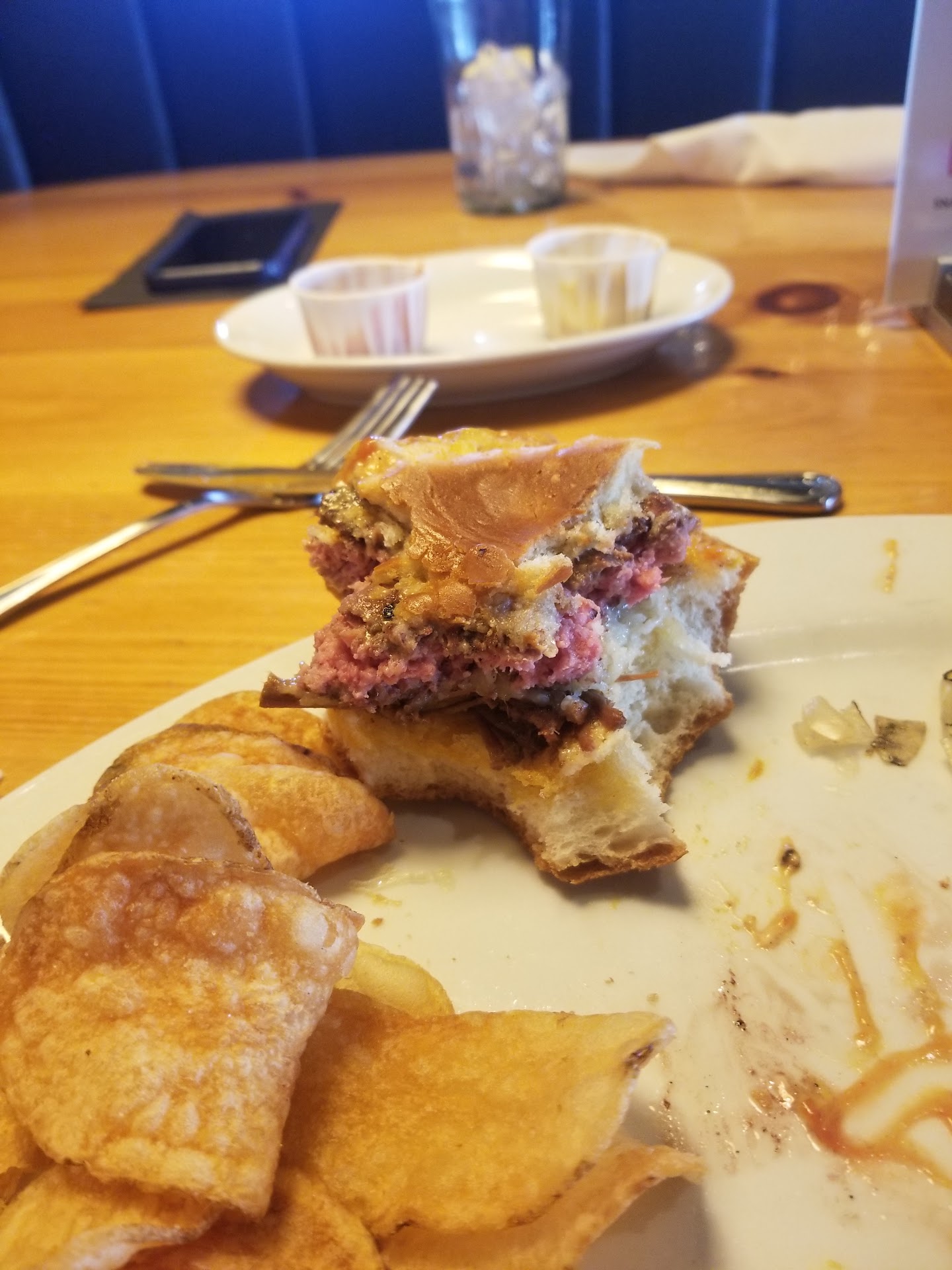 Read moreSlow service, Hamburger and chips took way to long ! Not cooked as I asked! I will not send anything back to be redone as I don't do that. Before Anyone Attacks me, straight out heads up place was less than Half full (not even close to half full) with plenty of Staff on hand! I don't just complain without being really disappointed in a food establishment as I understand you can't make everyone happy every time but I asked for well done (half done is what I got attached photo not sure what this is called) not close enough for me. Meal was paid for as I don't like staff or anyone else losing money(I paid because I Didn't get up and leave immediately, I believe if you eat more than 1 bite You should pay or 1 bite and give them opportunity to replace it )I usually eat all or most of my food as picture shows I didn't finish that ( as I stated before I don't send food back, I ate what I could as I had to get back to work) Prices were Fair and not overpriced by no means and they were friendly people, it's just not for me! Please note I don't live in this area of town so I could have ordered Wrong(not sure how but I do make mistakes, well done I thought Meant Fully cooked no pink), Really nice place to get a meal with Great atmosphere again just not for me. Anyone who knows me knows I Rarely leave food or drink unfinished, tea was some kind of flavor I was not sure of, didn't finish that either , just asked for iced sweet tea. Try this place for yourself as This is My opinion and not trying to discourage Anyone from going here, I did like the location, people and atmosphere( nice break from the hustle and bustle of life), I do Recommend You make sure you confirm You understand the Way you order your food prepared! Can't say this Enough I Really enjoyed the atmosphere AWESOME break in the middle of the day (lunch time) I may try them again in the future if I do I...