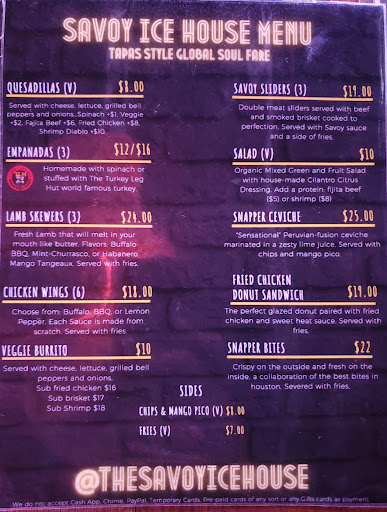 Read moreAbsolutely loved this place! This was my first time ever attending the SAVOY based on a lot of word of mouth recommendations and it did NOT disappoint In the slightest! When i first walked up i did not expect to be transported to what felt like the most hidden but obvious speakeasy I’ve ever been too! The decor complicated the laid back but “we’re here to have a good time” atmosphere. Of course i had to order some food & drinks… Ooo my gawd! The ultimate catch over grits was everything i needed but didn’t know i needed! This had fried shrimp, a catfish filet and a lobster tail over grits with some sautéed veggies. You can order it fried or grilled but me?! Fry everything please and thank you! Nothing was overcooked or dry.. just crispy deliciousness! If i wasn’t full i would have said “throw another lobster tail on that thang… expeditiously!” The drink menu was so vast i went with a recommendation from my server (Tasia) & this drink shld come with a caution sign! “The sneaky link” was so smooth and went down well but i did use grand marnier as my topper so yeaaaaa! Now add all this with a bomb a** DJ playing every some you will literally catch yourself & everyone around you grooving to! Let’s just say, if you walked in with a dark cloud over your head… you’ll walk out with the sun shining over you from your experience here!!! I would def recommend this place to anyone in Houston or visiting looking for the vibe where good drinks, good food and good people come together effortlessly!