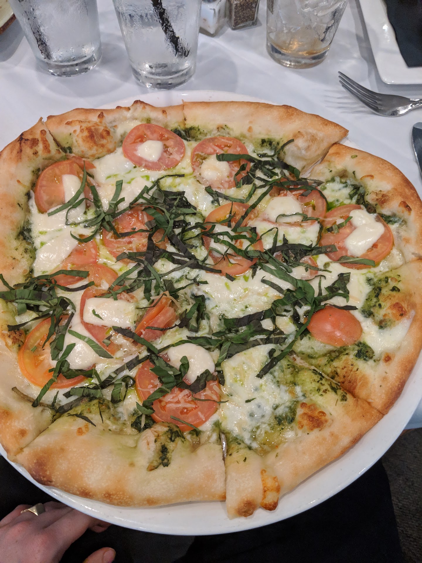 Crab cakes were described as all lump no breadcrumbs which sounding interesting although not my style. In actuality, we had to search for crab meat, couldn't taste the crab meat or much else. If cheap frozen crab cakes from a box at Kroger tasted like this, I would be disappointed. My wife was thinking the exact same thing. No questions were asked even though my wife sent hers back with only a single bite taken out of it. The duo of sauces (marinara and something herbal?) were an interesting choice.
