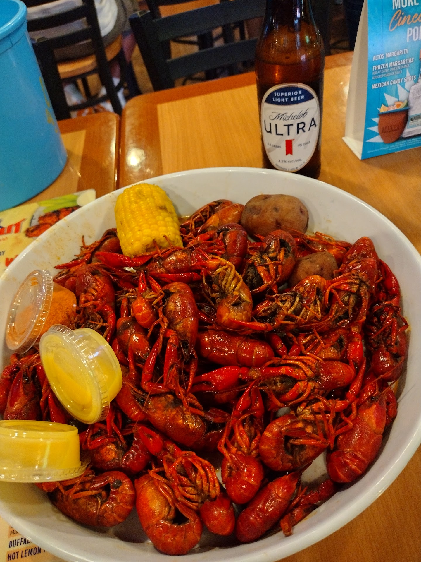 Read moreSo yesterday, I was feeling adventurous and wanted to get a piercing so, of course, I needed some liquid courage. I headed to one of my spots but was invited to head over to the Timeout for their $1.99 crawfish. Now, I'm not usually a fan of crawfish (something about their beady little eyes staring at me), but in the spirit of being adventurous, I headed there and ordered a pound! The crawfish were tiny but well flavored and their garlic butter sauce was the best flavor enhancer.
