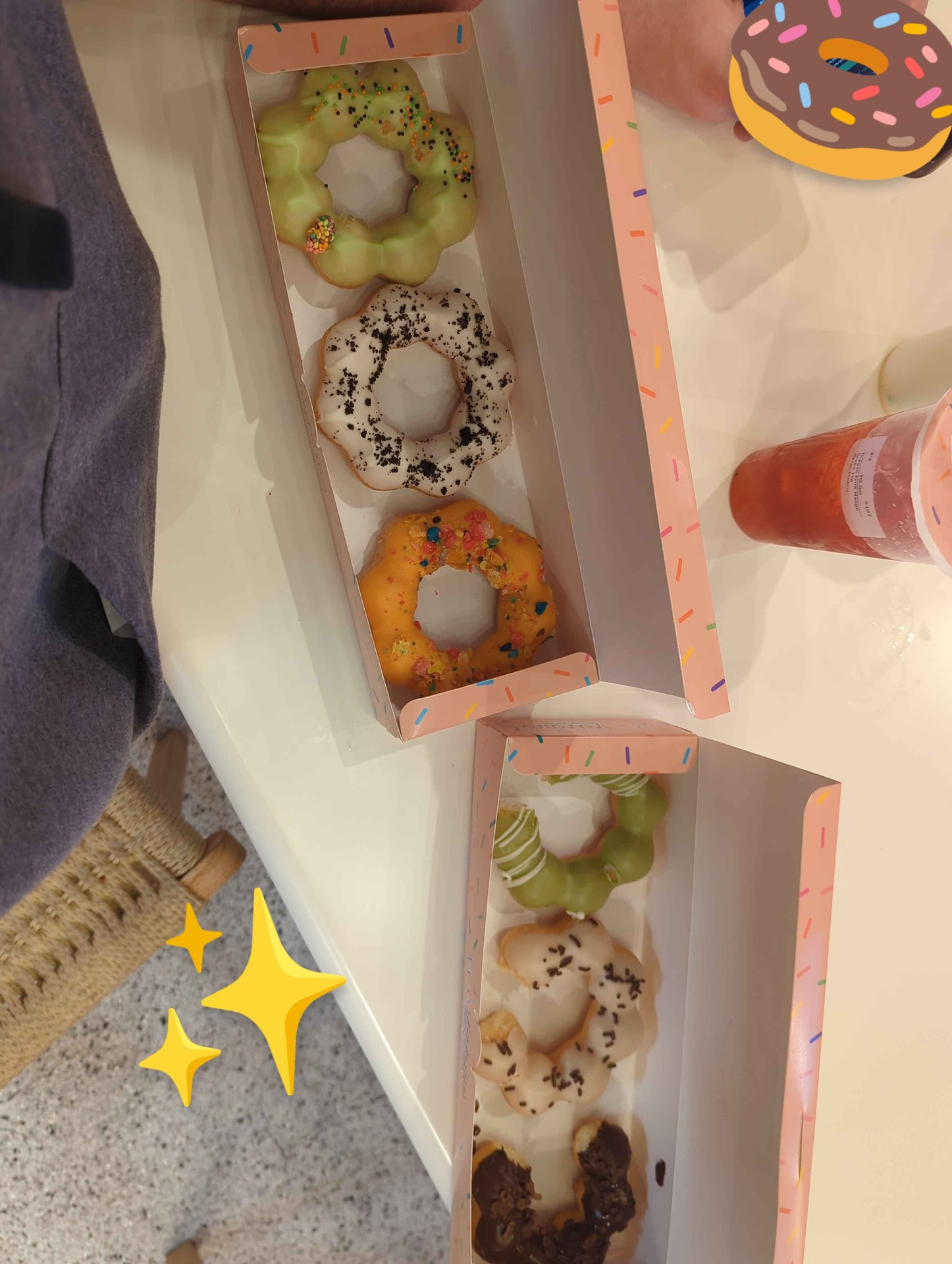 Upon my arrival, I was greeted with the pleasant smells of Donuts and coffee, and the friendliest "Hi, welcome in!" I've ever heard. My eyes were immediately drawn to the little claw machine as soon as you enter, and mind you, the cleanliness was beyond expectations. A statue of Totoro greets you aswell and the vibrant pink colors and unique decor really make this place stand out.