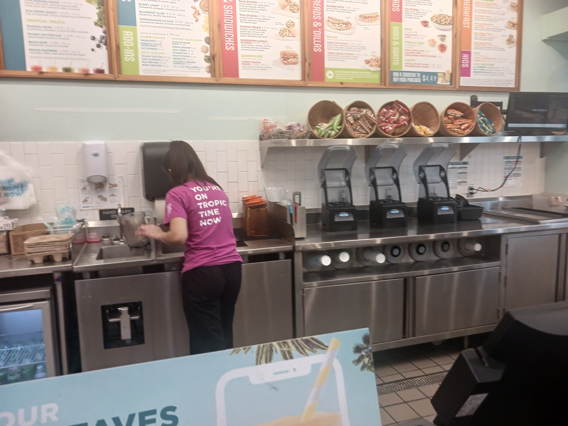 Read moreI looooove tropical café yet never had been to the king wood location. To start with the food is wonderful. I ordered two salads and accidentally got two wraps. Two very sweet Caucasian girls with a very sweet attitude corrected the mistake and made the salads. That’s when things felt very strange. There was an Asian girl who my two daughters kept telling me she was rolling her eyes to. I tried to ignore it and felt bad since she took the order. So maybe she was upset I mentioned I wanted salad not wrap. Well we leave( and this white guy who was not wearing a uniform maybe her boyfriend or an employee who was off) get off his seat by the counter and walks to the table we were sitting and starts inspecting it. Then picks up a napkin we accidentally missed when we threw our trash away and keep pointing at us shaking his head like to make us feel bad we left the napkin. It just felt so weird. We will keep going to tropical smoothy but never again to this location. Both the Asian girl and the white guy made it extremely weird. Other than that the other two girls were super wonderful and so...