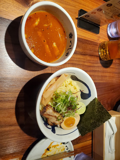 For our entreés we ordered the Tsukemen Deluxe and the Spicy Tsukemen. This was our first time trying dipping ramen and it was such a wonderful experience! We have been wanting to try a place with the perfectly chewy and fresh noodles and this was such a hit! The noodles were perfect for grabbing up the thicker and salty soup! The soup was super flavorful, hot, and had lots of pork in it, in addition to the toppings we had. The ajitama (marinated egg) was the perfect addition to break up all the porky-ness and the additon of lime juice was the perfect acidity to cut through the rich pork flavor! Once we were getting full Tom brought us some of the Wari (broth) which thinned out our dipping soup, heating it up and making it more drinkable towards the end! We loved Tsujita and will definitely be recommending it to friends/family to try and visiting for more date...