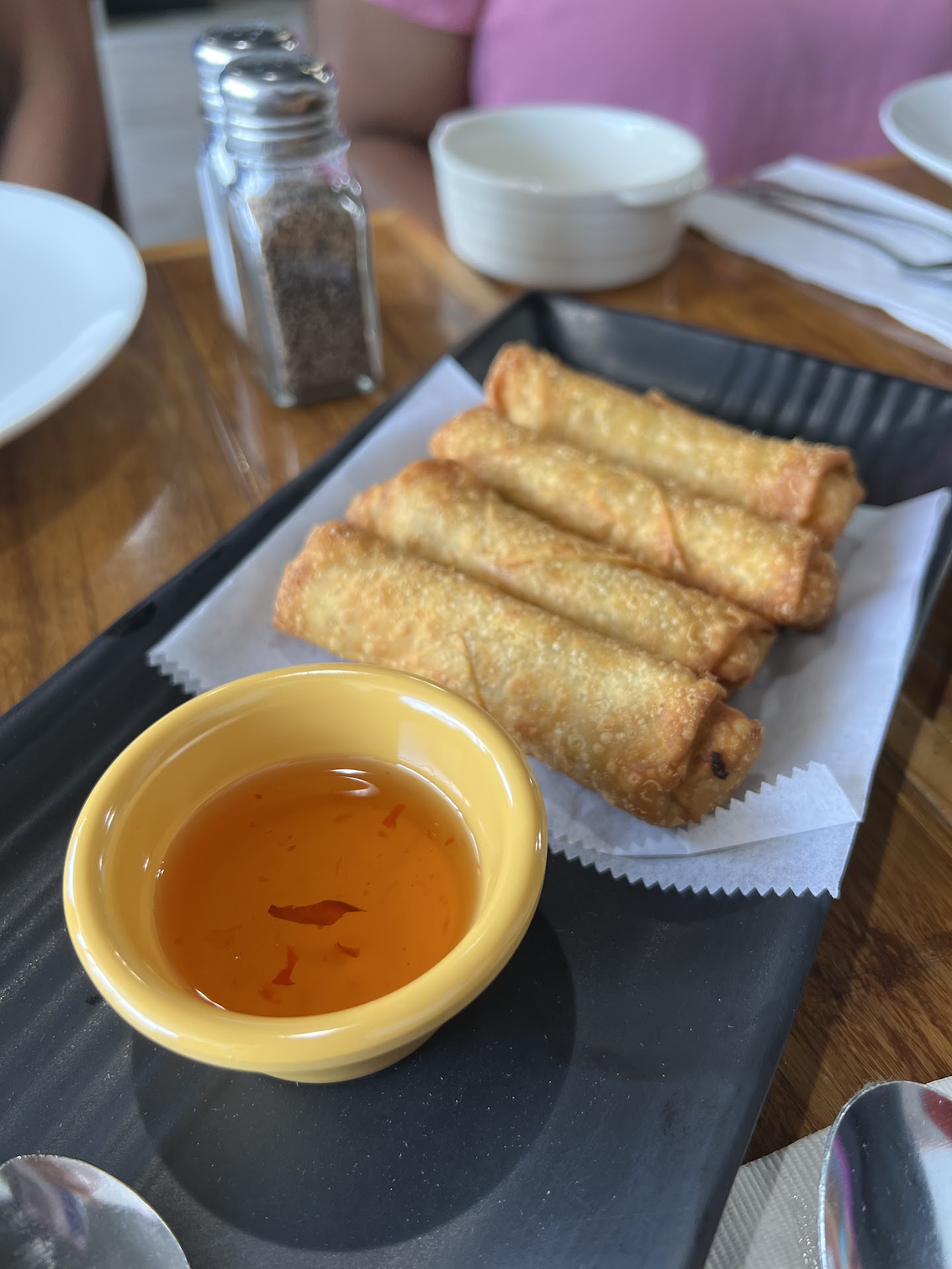 Chicken egg roll and pork egg roll - we had requested for the egg rolls to be extra crispy and they came out perfection. Both eggrolls were filled with meat, no fillers. I do prefer the chicken egg rolls. Chicken satay - came in 4 skewers, chicken came in the traditional skewer and was moist and tender, and I absolutely loved the peanut sauce that came with the satay.. probably one of my favorite highlights. Moo ping - came in 4 skewers as well, it was charred beautifully and was tender, and it came with its own sauce, but I didn’t get to try it since I preferred the peanut sauce from the chicken satay. Shrimp Tom Yum Soup - my heart was so happy to see a lot of mushrooms and fresh shrimp (cooked of course) included with the soup. The broth was like a warm hug, but I would say I would like the temperature to be a little hotter. Spice level tasted mild to me but my spice tolerance is pretty high. Pag See Ew Beef - if I knew that we could add more noodles for an extra charge I would have. This noodle dish is one of my favorite and go-to Thai dishes whenever I go to one, so I will be very critical on this one. It was delicious for sure, but I was looking for the smokey taste that was missing on this one. Spice level on this one tasted mild as well. Pad Thai - it was a solid choice, you can never go wrong on this one. It had plenty of noodles and chicken. We also requested for the noodles to be put to the side and they honored this. Spice level on this one tasted mild as well. Crabmeat Fried Rice - I actually really enjoyed this one. I wish I was able to eat more of this, solid choice for sure. Spice level on this one tasted mild as well. Panang Curry Pork - (not pictured), another dish I wished I ate more of, it was another solid choice. I really enjoyed this one, creamy, and the spices were all there. Mango Sticky Rice - it was warm and not too sweet. It was a perfect dessert to have after all the food and the heat. It’s soothing and like a warm hug. Thai Tea - it was so good! You have to try it.