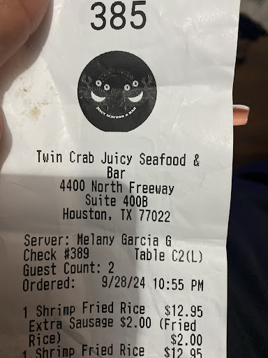Food was mid. I have been to twin crab on 45 & Fuqua & always had a great experience. I was meeting up with a friend near by & decided to come here. Our server was Javier L. Food was good. But the experience was not. He only came once to our table and that was it. My husband had to call him over twice to refill our drinks. When the check came he was not transparent about the tip. I got what I usually get at the other location & when i heard the amount he was charging me, was odd because we never paid that much. I understand every restaurant even if it is the same chain has different policies & prices. But when he came out to our table he said he preferred cash tips in a very disrespectful way. My friend told him she would leave it on her card and so would I because we never carry cash. My friend found in her wallet 4$ cash and gave them to āJavierā. He made a face like he was upset. We asked for our receipt & he was very hesitant & said if we signed up for the rewards we would automatically get them on the phone. Which was a lie & we asked for physical copy of the receipt. He then gave it to us. & it showed that the service charge was already added on there & he was not transparent about that and we both added additional tips on there making his tip bigger. I usually tip well but his service was not great & was disrespectful & NOT transparent. He did not deserve a great tip. I feel scammed. They need to train him better & show him customer service. Because of that we will...