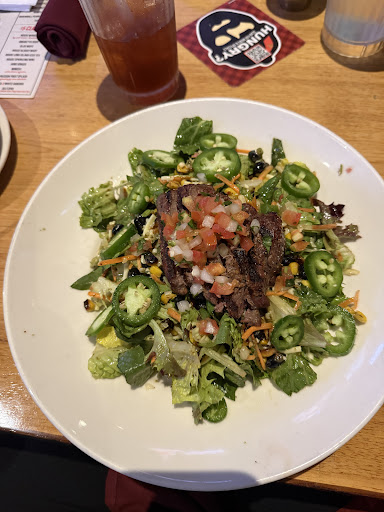 I had an absolutely unforgettable dining experience at Twin Peaks in Houston, Texas, located at 11335 Katy Freeway, and I’m already itching to go back! This lively sports lodge is a standout, delivering a perfect blend of high-energy vibes, exceptional service, and mouthwatering food that makes every visit feel like a touchdown. Nestled right off the Katy Freeway, the restaurant’s rustic mountain-lodge aesthetic—complete with timber accents, cozy booths, and a sea of massive TVs broadcasting every major game—creates an electric atmosphere that’s ideal for sports fans, casual diners, or anyone looking to soak up a fun, welcoming environment. Whether you’re cheering for your team or just enjoying a meal with friends, Twin Peaks Houston sets the stage for a fantastic time. The star of my visit was the steak salad, which was hands-down one of the best I’ve ever had. This wasn’t your average salad—it was a culinary masterpiece that left me raving to everyone I know. The grilled sirloin, cooked to a flawless medium-rare, was tender, juicy, and bursting with smoky, charred flavor. It arrived thinly sliced and generously portioned atop a vibrant bed of crisp mixed greens that screamed freshness. The Southwest-inspired toppings were a game-changer: zesty pico de gallo, sweet roasted corn, hearty black beans, shredded carrots, ripe tomatoes, and a perfect sprinkle of pepper jack cheese added layers of texture and bold flavors. The jalapeño honey vinaigrette was the ultimate finishing touch, delivering a delightful mix of tangy heat and subtle sweetness that tied the dish together beautifully. At just 530 calories, this salad felt indulgent yet light, striking the perfect balance for a satisfying meal. I’ve had my share of steak salads, but Twin Peaks in Houston has crafted something truly special that I’ll be dreaming about until my next visit. Our server, Paige, was an absolute superstar who elevated the entire experience. Her warm smile, genuine enthusiasm, and spot-on menu knowledge made us feel like VIPs from start to finish. Paige checked in just the right amount, offered fantastic pairing suggestions—like one of their signature 29° draft beers, which arrived ice-cold in a frosty mug—and ensured every detail was perfect without ever being overbearing. The entire staff worked like a well-oiled machine, keeping the bustling restaurant running smoothly even during a packed evening rush. The space itself was immaculate, from the polished bar to the spotless tables, which added to the inviting, high-energy vibe. What makes Twin Peaks at 11335 Katy Freeway so remarkable is its ability to deliver on every front: incredible food, outstanding service, and an atmosphere that’s as fun as it is comfortable. The attention to detail, like the perfectly chilled drinks and the care put into every dish, reflects a level of quality that’s hard to beat. Online buzz backs this up, with Twin Peaks locations across Texas earning 4.5-star ratings on platforms like Uber Eats and Yelp for their consistent excellence and lively appeal. Whether you’re a Houston local, commuting along the Katy Freeway, or just visiting, Twin Peaks is a must-stop for anyone craving a memorable meal in a setting that’s bursting with personality. I’m already planning my next trip back to dive into that phenomenal steak salad again—here’s to Twin Peaks Houston for knocking it out...