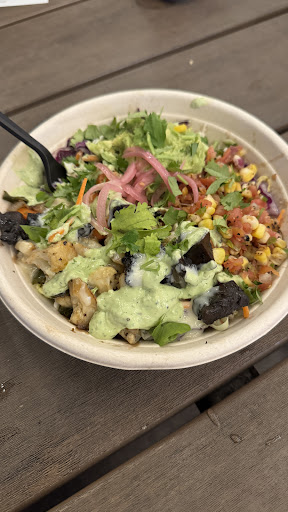 We ordered a variety of items to share: the paneer and Nashville Hot Tofu tacos, Elote Guacamole, and the Seasonal Veggie Bowl. The paneer taco featured fried paneer cheese complemented by vibrant sauces and fresh toppings, while the Nashville Hot Tofu taco offered a spicy kick balanced by cool slaw. The Elote Guacamole combined classic guacamole with roasted corn, queso fresco, and citrus lime crema, creating a flavorful twist on a traditional favorite. The Seasonal Veggie Bowl was a hearty mix of roasted vegetables, guacamole, and buttered cilantro basmati rice, providing a satisfying vegetarian option.