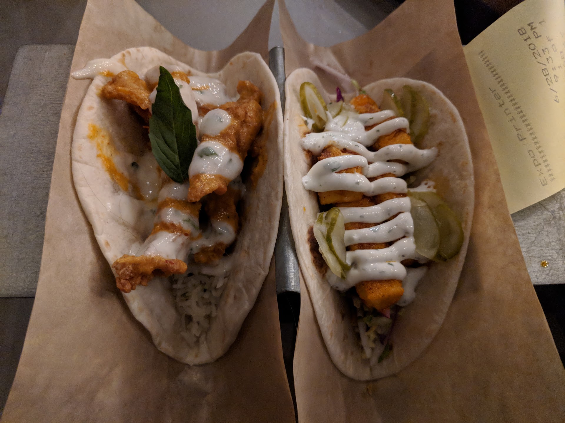 Read moreWe ordered the Spicy chicken tikka taco, Nashville hot crispy tofu taco, fried paneer taco, their taco of the month - chicken onion chutney taco, and the red coconut curry queso with blue corn chips. Of the all the above, I would say that the chicken tikka taco is a must have! The chicken tikka sauce and the basmati rice blend so well and the chicken was tender as well. It is on the spicier side but I would highly recommend it. After that I would recommend the Nashville hot crispy tofu one. The tofu was soft and crispy with thinly sliced pickles and hot sauce, and the taco was overall very flavourful! Again, this is on the hotter side, but I would recommend it for the taste. The paneer taco was good but had a lot of chunks of tomatoes, which was what you could only taste in the whole taco. The taco of the month was good too but was served on a corn tortilla, and I am personally not a fan of those. The red coconut curry queso tasted like thai red curry with oodles of cheese. A good twist to the reular queso. The ambiance is awesome. One of the spots that's open until late night and also...