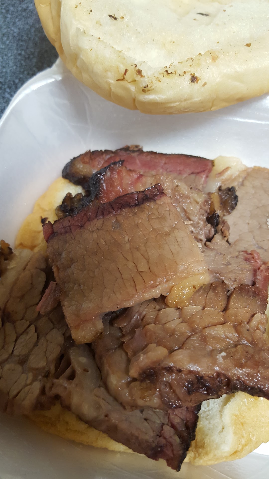 I ordered a brisket and pork rib plate. The ribs were on top so I started there. The first bite told me I wasn't going to be disappointed by anything. It was abounding with the right combination of flavors from proper seasoning and skilled smoking. And then I got to the brisket...wow! The smoke ring looked beautiful, the bark was delicious, and the meat was so tender juicy. There was one slice from the lean side and one from the fattier side. The lean piece was literally juicier than some restaurants' moist brisket. It was just incredible. Picking it up on the plastic knife, it bent exactly like a slice of brisket should. The fattier side of the brisket was even a whole level better than that! The fat was rendered perfectly - this piece of beef was cooked to perfection and rested until the fat was perfectly distributed, not greasy but oh so juicy. Like, if you're thirsty this brisket has enough moisture to rehydrate you! (This may be a slight exaggeration...)