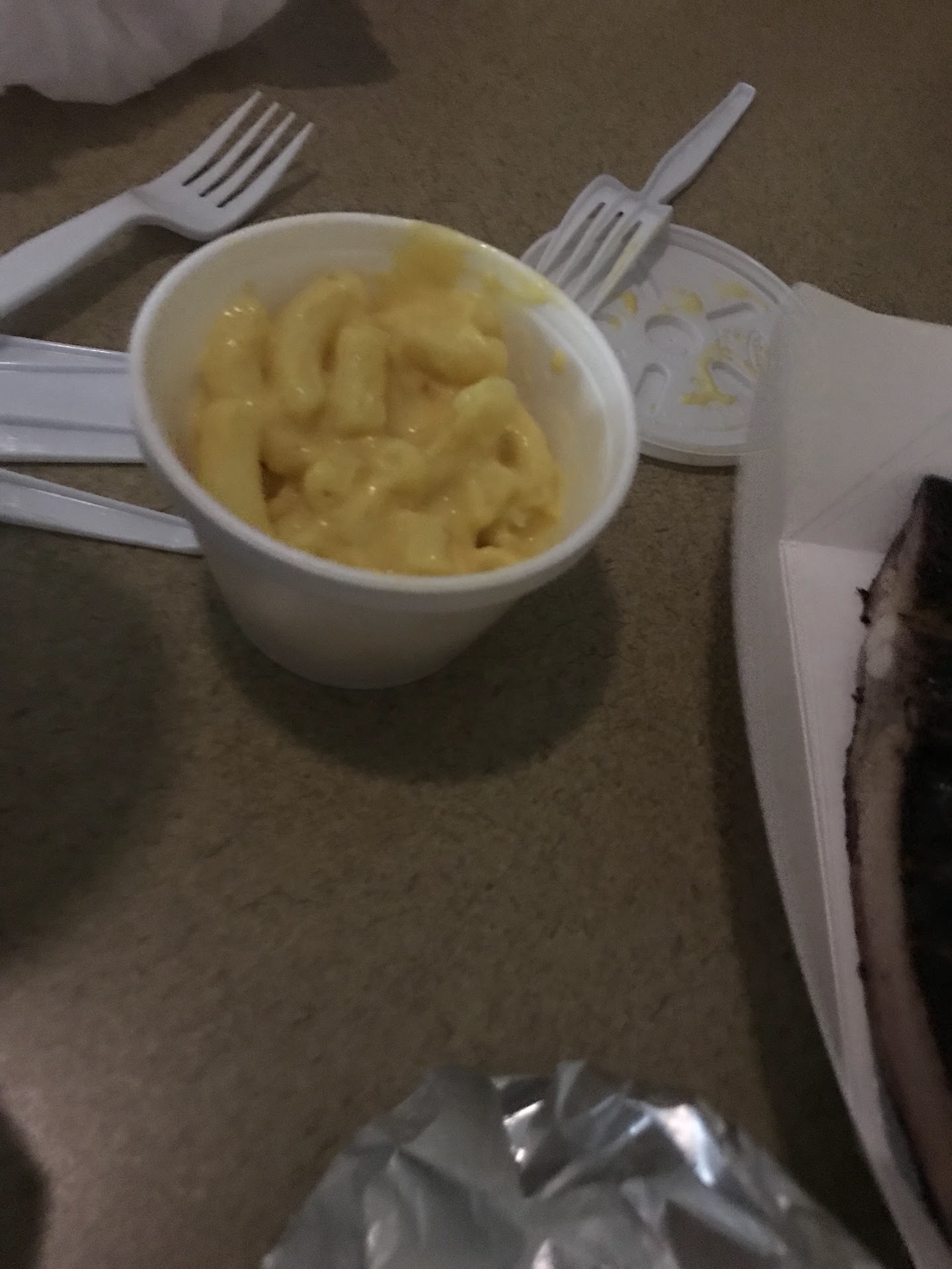 Food: Ribs: delicious, tender and had a good chunk of meat Brisket slices: omg melt in your mouth so good! The taste was amazing! Smokey Links: were on point Green beans: boy! Let me tell you about those! I have never had greens like that!! I wanted to eat a bowl full of them! Baked beans: delicious Mac&cheese: it was blah, need some flavor or salt Overall: great food BUT HELLA EXPENSIVE!!! The portions were small and I paid 21.00 for that plate and dessert including taxes...is it worth it?!? No. Portion matter when it comes to paying a arm and a...
