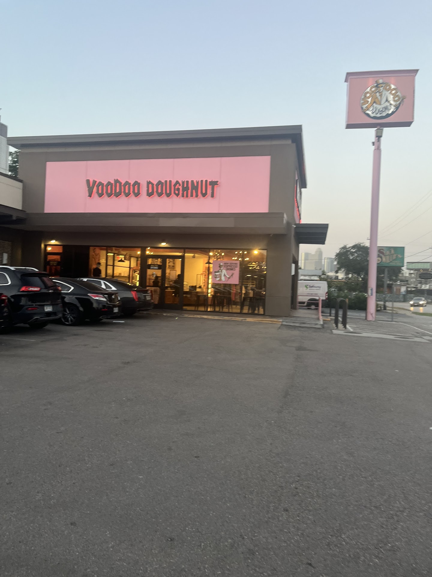 Ā Ā Ā Read moreVoodoo doughnuts offer the traditional options regular doughnut shops offer, but what sets them apart are their specialty doughnuts. When I went the āHomerā doughnut caught my eye!!! Now I wouldnāt say the icing on the doughnut is the same as the one you have at other shops. The frosting on this doughnut was very similar to a buttercream frosting thatās usually found on cakes. I was a bit surprised at the frosting as it made the doughnut feel more so like a cake rather than a traditional doughnut!! It was still good nonetheless. The next thing I got was the iconic glazed doughnut!!! This one was a traditional choice and voodoo did NOT disappoint!! Now as for the big contenders of the night; the Maple Bacon Bar and their Mocha coffee. I was a bit apprehensive at the thought of bacon with a doughnut, but WOW!! The saltiness of the bacon and sweetness of the maple frosting are a match made in heaven. This bar is the epitome of an American breakfast all in a doughnut. This location now offers coffee options which do not disappoint. The mocha iced or hot are super delicious. If you like your coffee on the sweeter side get the iced version. As shown in the picture they drizzle a lot of chocolate sauce all over the cup!!! If you are ever in the area make sure to go on down to voodoo and try out their various delicious items. The only downside at this location is that the dining area is very limited. I only saw three tables when I went so keep this in mind if you...