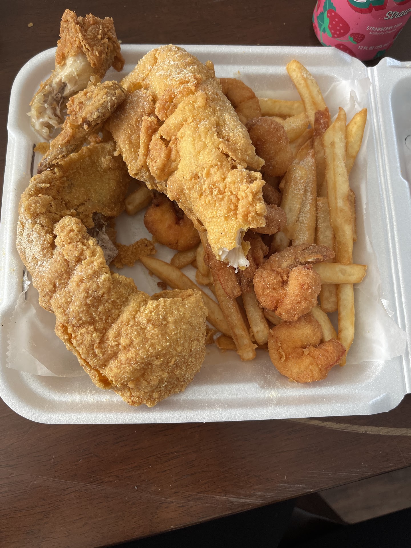 Read moreOkay me and my husband come here quite often and always order the same thing. Fried Shrimp and I get Mac and cheese bites instead of fries because the fries could be cooked alittle longer. They are alittle too soggy for my liking. I order the Mac and cheese bites. Comes with a side of coleslaw and plenty of sauces for dipping. Cocktail, hot sauce and some type of sauce that could be mayo and ketchup. Food is always hot and fresh when we receive it and the wait isn’t long at all. I ordered inside and waited in my vehicle and the employee brought my food out to me. Wasn’t expecting that but I was thankful. The area is alittle sketchy. There is a drive thru if you choose not to go inside. It’s in the same parking Lot as the gas station. Food is amazing though. Give them a try if you haven’t already. It’s more of a pick up and go and not a sit...