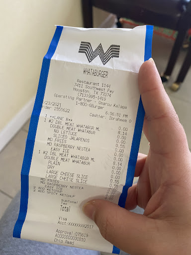 Read moreWhataburger is usually good but this particular location is subpar. I just ordered 2 justaburgers and 2 jalapeño burgers and it took forever to get the order. Also they did not respect the line order. They just kept on giving the order to the cars that came after me. Through all this I did not complain. Finally, I got my order and went home. When I got home, I found that my order was not completed so I went back to get my order filled properly and I decided to talk to the manager about what happened. I told him everything and he thought that I came to get some stuff for free and I explained that I don’t want anything for free. I explained that first I would like for them to respect the line the drive through because it is not fair to be in the front of the line while they fill orders in for the back of the line. Second, I want them to make sure that they fill in the order properly so customers don’t have to drive back to get their orders filled properly. However, the manager was unsympathetic and seems to be annoyed. I told him that this turns customers away but he didn’t seem to care. I also told him that the owner of this particular business might care but again he just seem bothered. I have resorted to post this review. This is my first post ever and I hope this we’ll help future customers. As for me, I will be going to the...