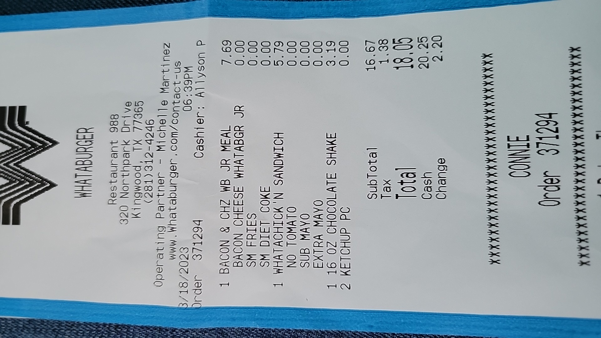Read moreAvoid this freaking Whataburger! Especially their curbside. My husband waited in the car for like 10 minutes, and ended up having to go inside. And the entire order was incorrect! I worked at Whataburger for two years when I was a teenager, and we actually cared enough about our customers to make sure their meal was correct and fresh. In the last year, anytime I have gone the fries haven’t been fresh. What is going on?! As busy as they are, how are the fries always stale? As long as my husband waited he could’ve gone to the Whataburger in Porter and came back home. From now on I am avoiding this Whataburger like the plague, and you should too. I never post angry reviews, but enough is enough with this Whataburger, get it together! Husband and I will be going to the Porter location from now on, that one is better anyway. If you’re going to spend a lot of money, and we know how pricey fast food is now, it should be fresh and correct! Please don’t go here!