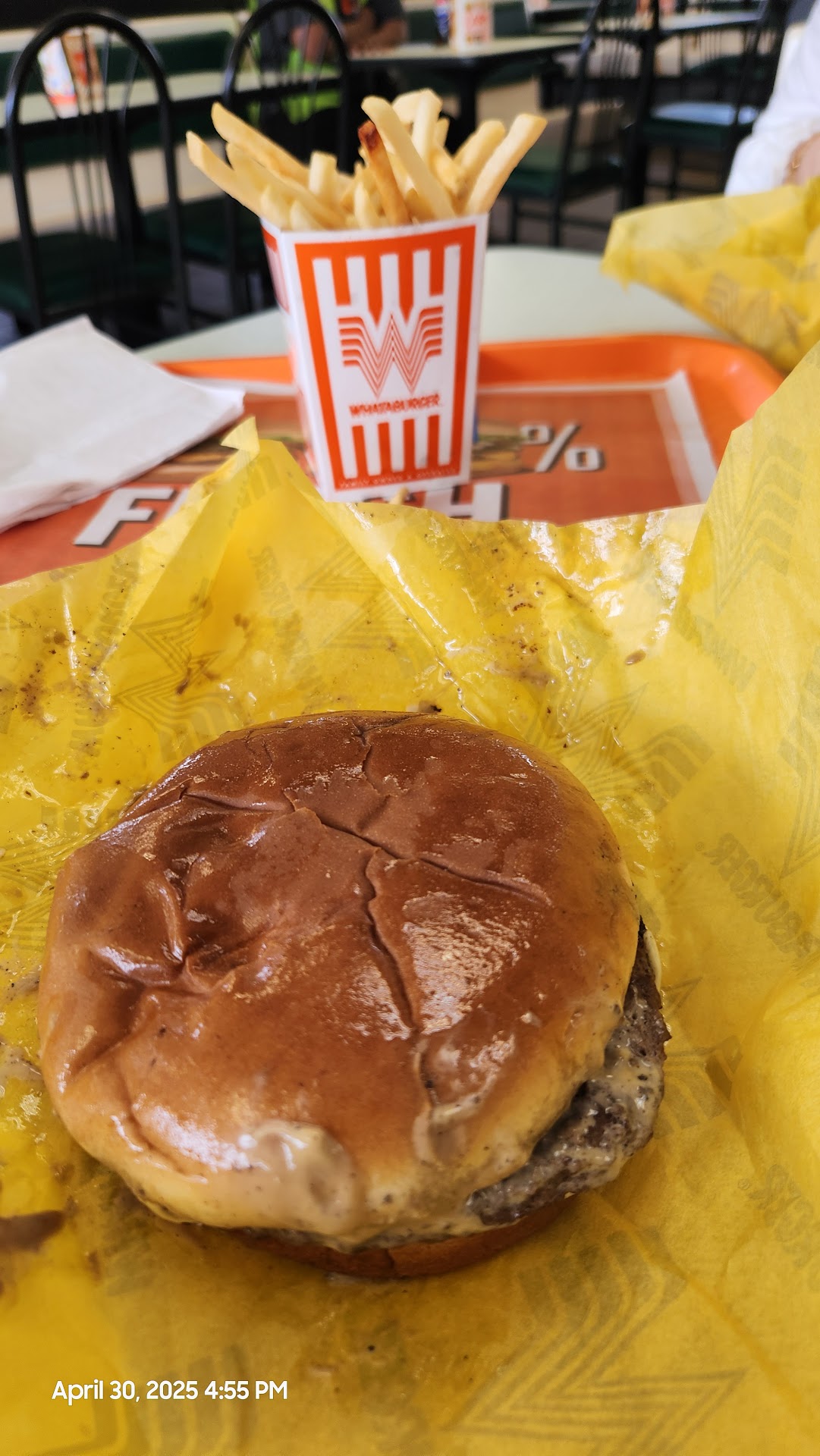 Read moreStopped through here on a Wednesday after work and running a couple of errands. No cars ahead, pulled straight up and ordered. Get to the window, and checking my receipt notice a charge for cheese on one burger but requested no cheese on both burgers. So they had to fix it. We wait, they come with the bag and just to confirm, I ask "no cheese on both right?". He looks in the bag, asks the back why the burger is wrapped in yellow if it's no cheese. He says just a minute, walks away. We wait. He comes back, apologizes passes the bag. Per Google, I live 0.7 miles away from this location. We go straight home, straight to eat and the burgers thankfully have no cheese but everything is cold. I could understand if there was a drive, but to have to wait for the order to be corrected twice, then go less than a mile away and the patties were literally cold to the touch, fries lukewarm. We had to heat everything up. As a tired moma crunching time and trying to conserve her energy, this is beyond frustrating. Workers y'all gotta do better. Get off y'all phones and do...