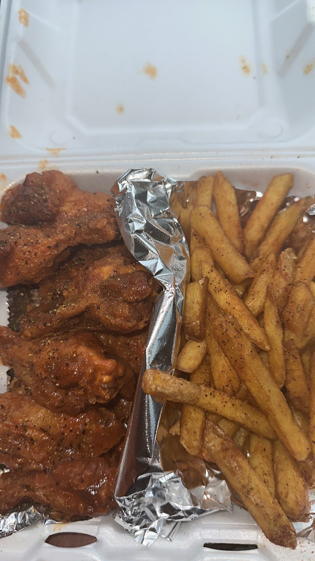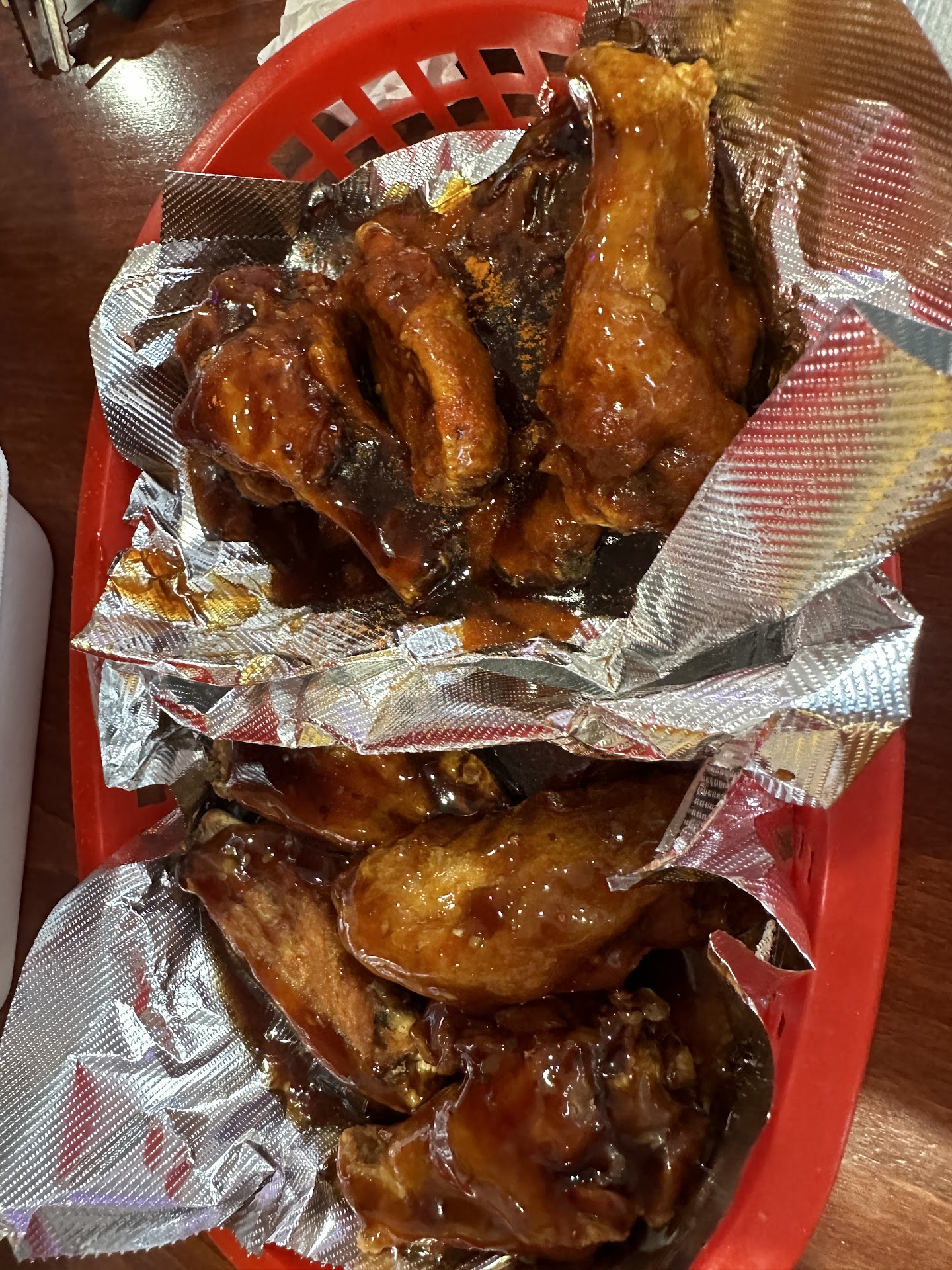 I will say we went because my son LOVES wings and it has 4.9 stars so we were super excited to try them. First off it is a very small establishment next to a gas station so it did give a little pause when we went but we were there for the wings so we didn't care. We wanted to dine in, but it was too small to be comfortable for 5 people so we got it to go since we live so close. Ok, service was good. The cashier was very friendly and helpful. She was great. However, she did kinda mess up our order. We ordered the bone in wings and wanted to try boneless bc they have so many flavors but they said they were out of boneless. So we got the tenders in two flavors. Also ordered the 'wing rolls' since they were supposed to be sooo good. Ok so she messed up and only gave us one flavor in the tenders and one wing roll. Not a huge deal but definitely not the order. Ok so for the actual food. We got the original hot, lemon pepper and cajun ranch for the wings. My favorite was the original hot which were VERY spicy but super flavorful. I'm a lemon pepper or ranch kinda person but those were just ok. For the tenders we got garlic Parmesan and ordered cajun but didn't get them. Ok, the tenders were overcooked and the flavor was super lacking. Like kinda no flavor at all which was disappointing. Plus the tenders were so big they definitely could have been cut up into boneless, heck one even looked like a chicken patty. The wing rolls...yall..was just a regular chicken egg roll. Definitely not housemade. Good but disappointing. Overall, we will be trying them again bc I LOVED the hot honey sauce that came with the egg roll. I want some wings with that sauce. Definitely try them but probably get wet flavors bc the dry was...