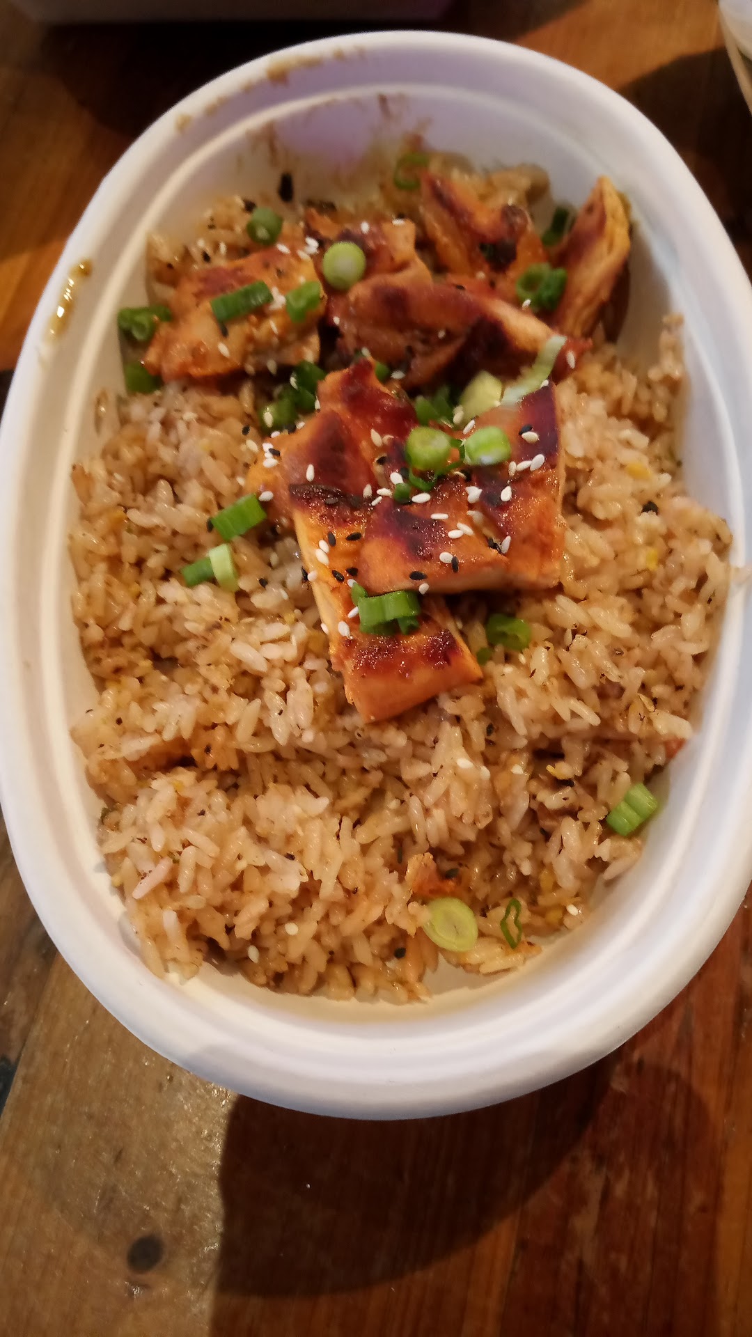 When I first got my food I thought this looks so good and smells amazing but the chicken looked a little dry. Surprisingly it was JUICY, and crispy! The flavor of the chicken definitely had a good pepper/umami flavor to them. I’m not sure if they were using white meat chicken but thankfully it tasted like it.