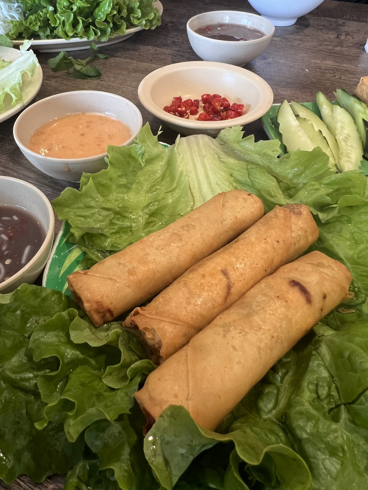 I had this place recommended to me from a friend and I decided to come here during the week for lunch. When I walked in I was greeted and gestured towards a table. The hostess/waitress was very kind and friendly. Although she spoke limited English and I spoke limited Vietnamese (but learning), we were able to understand each other. I enjoyed the vibe of the restaurant. It seemed a little old school but it just made me enjoy the vibe even more. There was Vietnamese music playing on a TV/speaker, which again just enhanced the experience for me. I loved the authenticity of this restaurant. I ordered the Bún Đậu Mắm Tôm: 1. Bún Đậu Chà Thịt ( vermicelli, tofu, grilled pork pie, pork), (1 phần ) S, which was the portion for 1. For a split second, I thought maybe I should order the 2 phần or portion for two. Let me tell you, I would have not been able to finish a larger portion. I also ordered 1 order of Chả Giò Tôm Cua Xuân Hương (prawn - crab egg rolls). I had even toyed with the idea of ordering the Bò Kho + Bánh Mì. I wish I could have but I’m glad I did not. I did not anticipate getting this full off of these two dishes. For the Bún Đậu Mắm Tôm, I also ordered the Bánh Tráng (Rice Paper), which I used to wrap and roll the various ingredients up and dip into the sauce. Speaking of the sauce, I was warned that the shrimp paste on this particular dish would be stronger than usual. I did think the shrimp paste was more potent however I thoroughly enjoyed it and did not have a problem with the odor at all. Then again, I love durian too, so no surprises there. They will give you a pair of kitchen scissors to cut up the various ingredients like tofu, cakes, and pork. Just wet the rice paper in the water provided to get it damp and soft and then get to rolling. It’s way harder than it looks and gives me a new appreciation for the art of making gỏi cuốn. I ate everything on the platter.