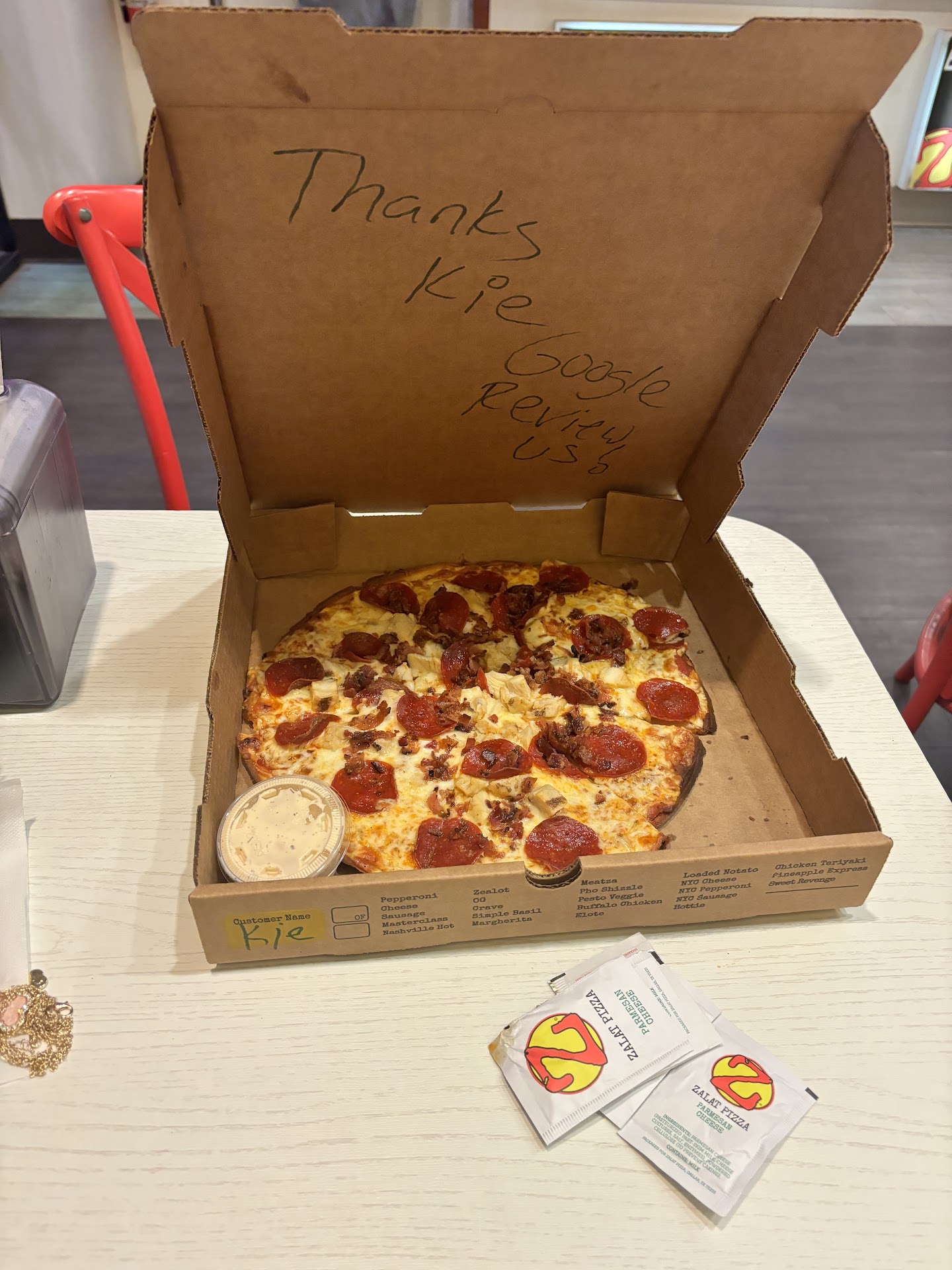 After a very long day, I placed a pickup order at night because Zalat was the only local pizza option still open.