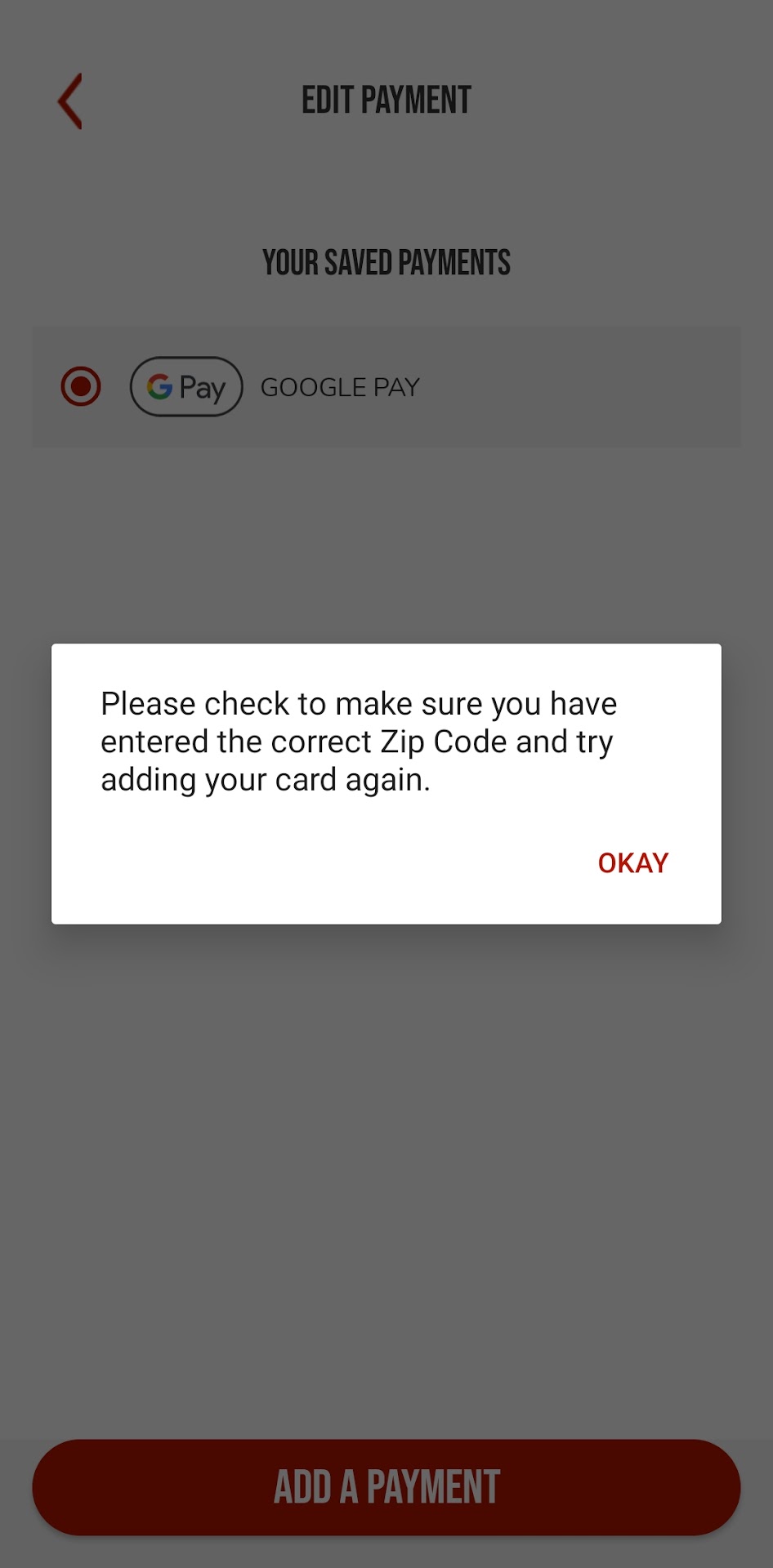The issue is squarely with whatever technology they using's ability to process payments. Some screenshots below. (Not shown: ordering on Chrome mobile says its missing zip yet there's no place to put a zip!)