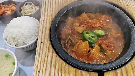 Pro tips: ask for a miso cup so you can pour yourself a miso soup while you wait for the Kimchi Jjigae (soups/stews by default don't get it) - you can ask for green onions on top. And you get a styrofoam cup to pour your own water from the tall white water dispensers. If you eat all your steamed rice they will give you more for free. They used to do that for the banchans/sides as well but we haven't asked recently & covid changed some of those things (it used be self-serve so basically unlimited). Once you're done put all your things on your tray & put the tray on the cart at the restaurant you...