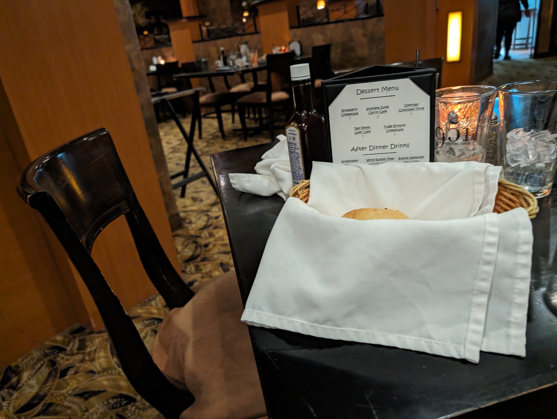 Fast forward about 50 minutes and our food finally starts to trickle out of the kitchen. The soup that I got was actually pretty good, but I wasn't expecting it to be the highlight of my entire meal. My entree (prime rib) was decent, but not all that great. The real disappointment came to the two unlucky souls at my table who were unfortunate enough to order the $30 steaks. These steaks were absolutely horrendous. I don't think that I have ever tried a drier steak in my entire life. I probably wouldn't have fed that steak to a dog. A few of the people at my table tried it and they all agreed.
